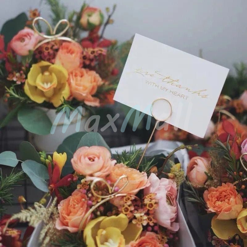 20PCS Stik Stick Klip Kartu Ucapan Kartu Ucapan Klip Kertas Stick Card Gold Buket Bunga Holder Klip Gold Stick Card Gagang Kartu Ucapan Stik Kartu Ucapan Greeting Card Stick Holder