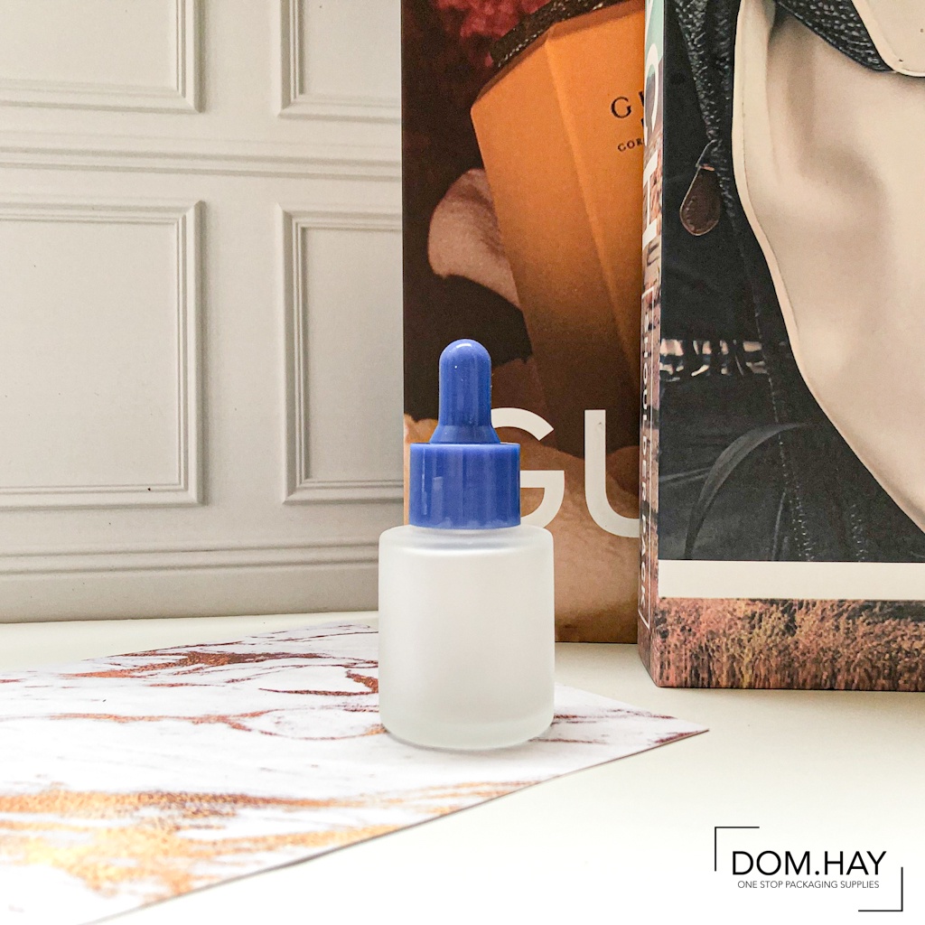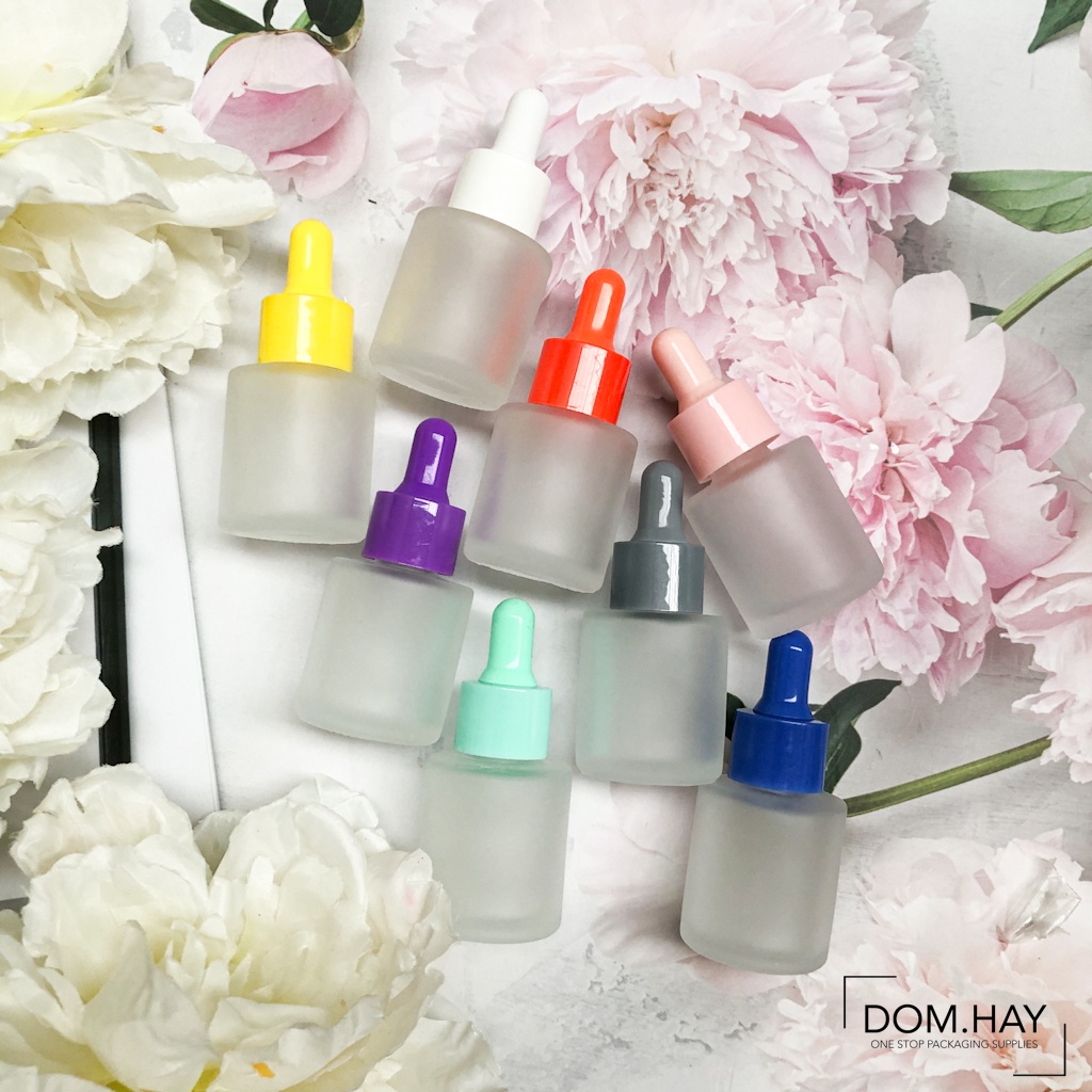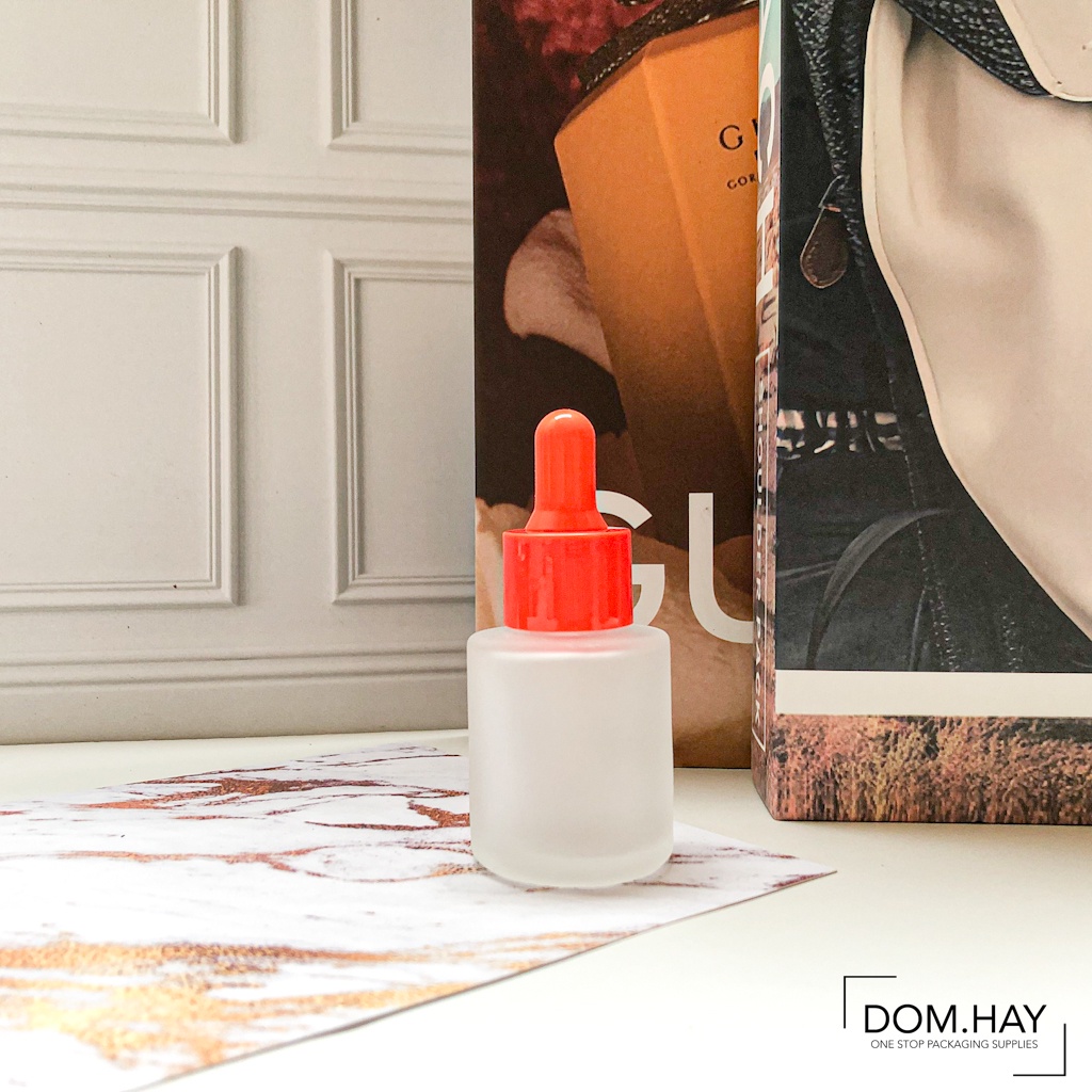 20ml Botol Pipet Kaca Frosted Bahu Datar Tutup Warna Packaging Kosmetik Skin Care Face Serum