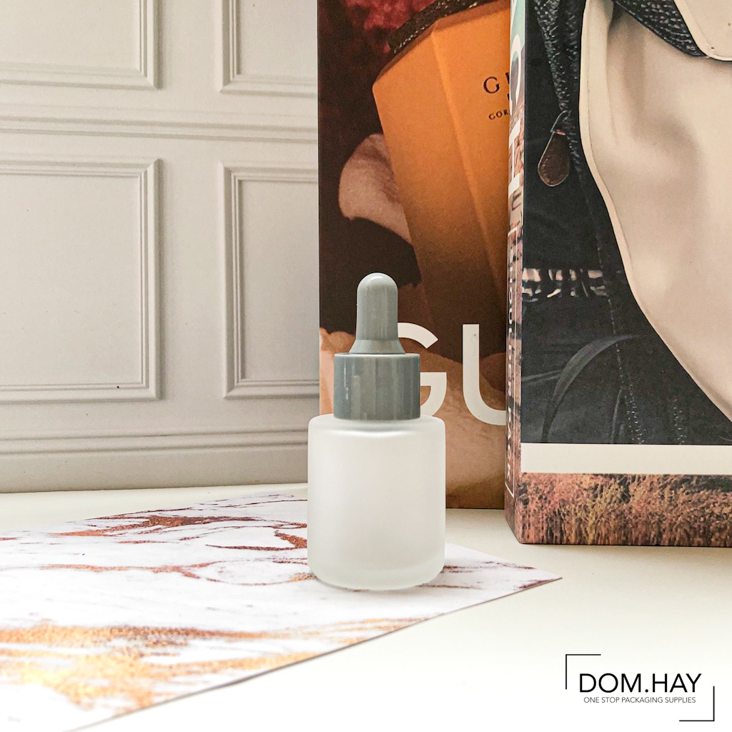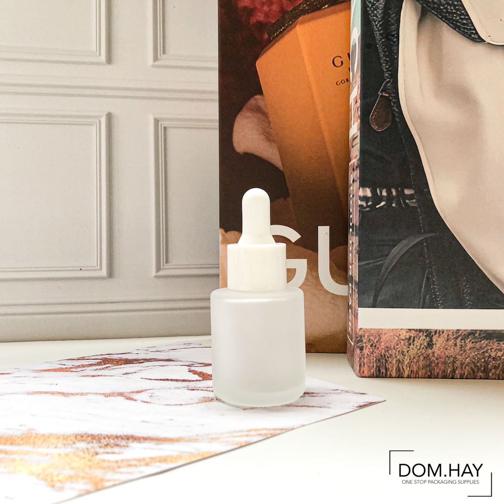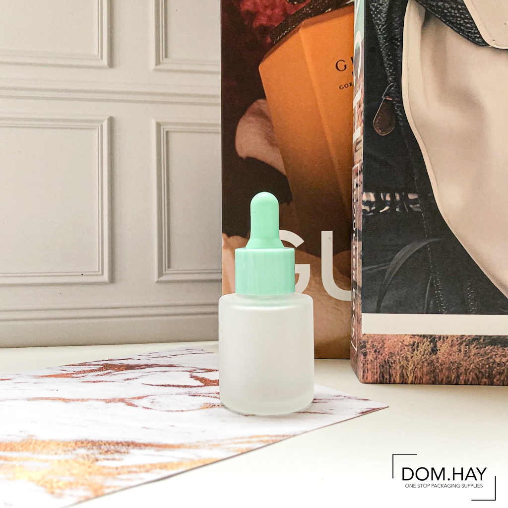 20ml Botol Pipet Kaca Frosted Bahu Datar Tutup Warna Packaging Kosmetik Skin Care Face Serum