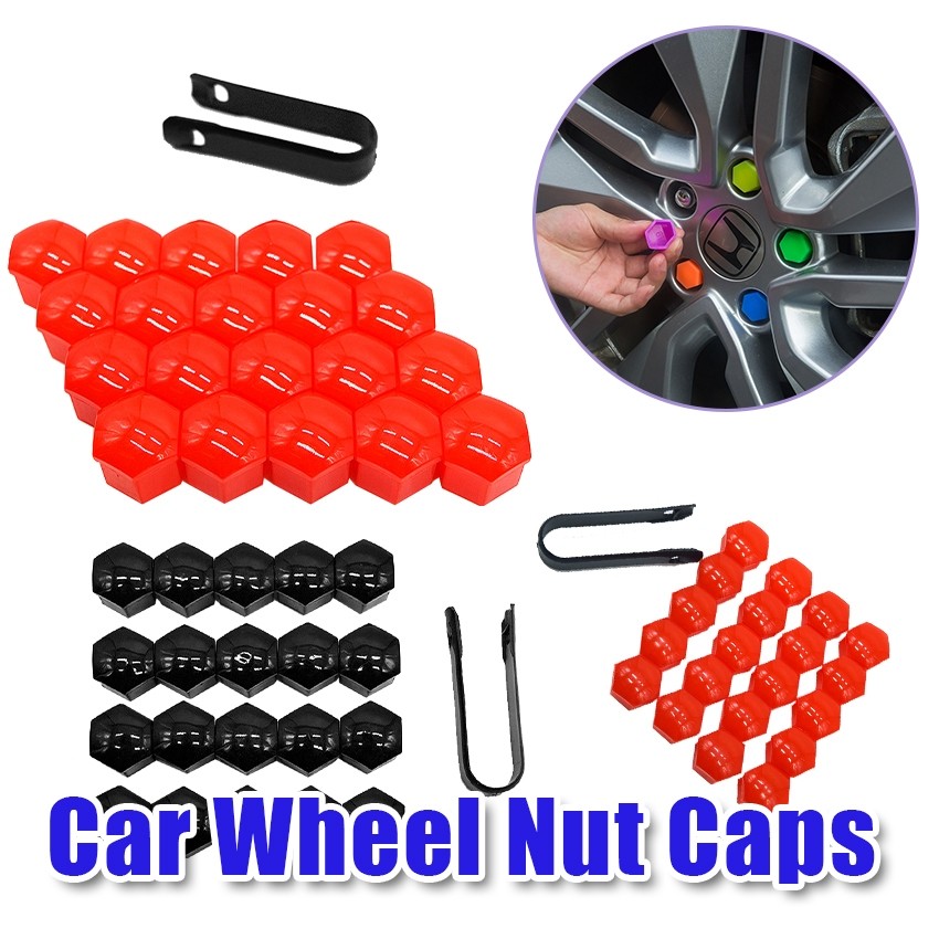 20pcs/Set Tutup Baut Ban Mobil Bahan Nilon / Tutup Baut roda / Kondom Baut Mobil 19/21mm (Termasuk Klip)