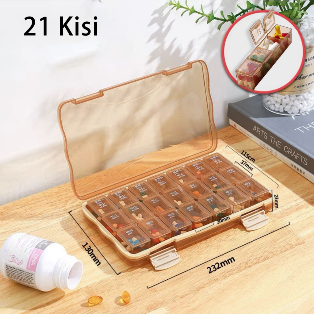 21/28 Slots Kotak Obat 7 Hari Tempat Obat Harian 7 Days Pill Medicine Box Weekly Tablet Holder Storage Pill Box