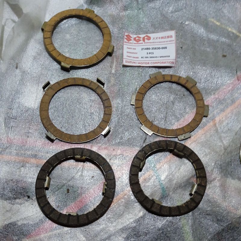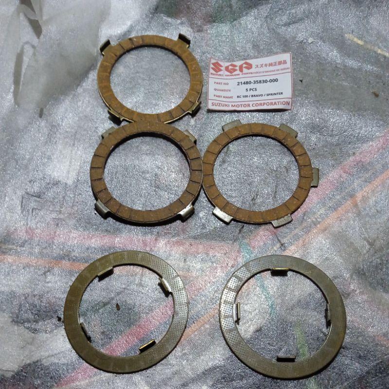 isi 5 21480 35830 000 original SGP Suzuki Indomobil genuine part NOS CKD kampas ganda kopling clutch kanvas Suzuki rc 100 Bravo Jet cooled sprinter nos isi 5 keping biji sesuai foto