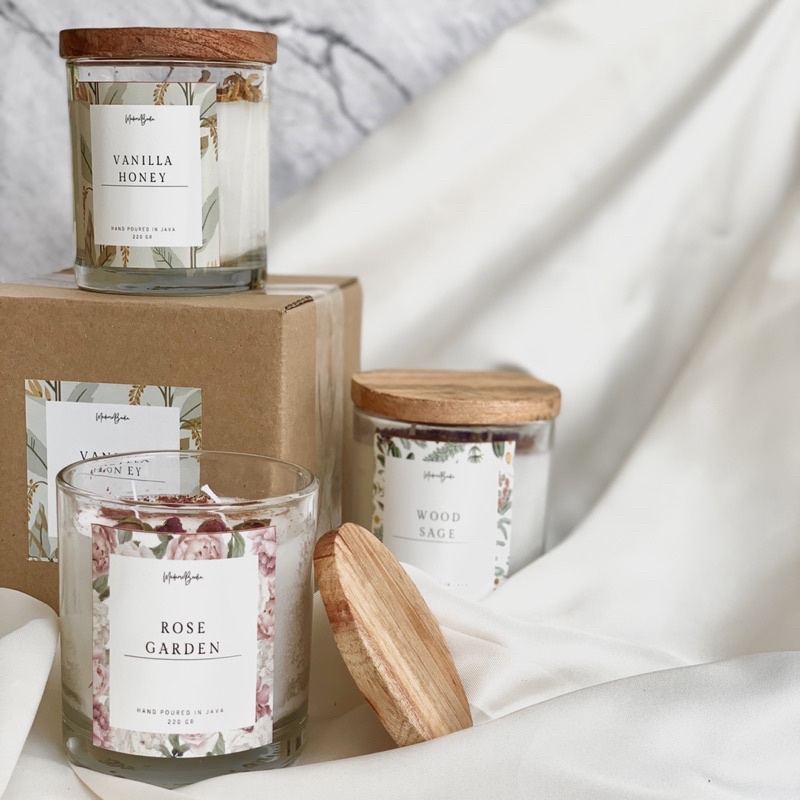220gr SCENTED CANDLE 2 WICKS WITH LID BY MADAME BERDIN | Aromatherapy Candle with dried flower | Lilin aromaterapi besar dengan tutup kayu | Hampers Natal 2025 Christmas Hampers - Kado Natal Lilin Natal - Christmas Candle