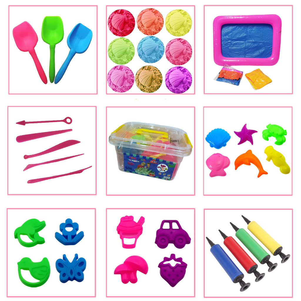 24 Buah Mainan Cetakan Pasir/Mainan Anak Anak/Set Pasir Sensorik Mainan Pantai Dalam Ruangan Dengan Kolam Tiup 6 Buah Kastil 12 Buah Model Laut 1kg