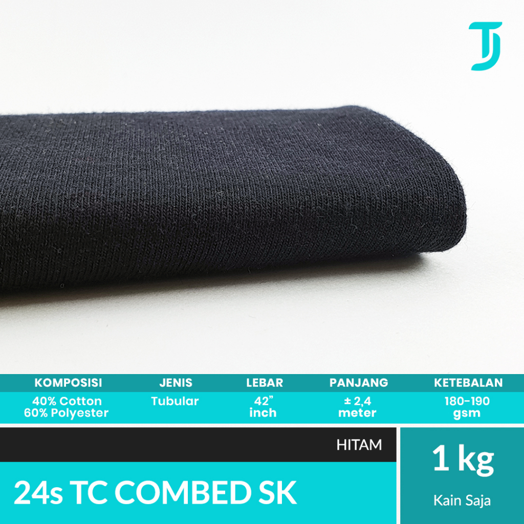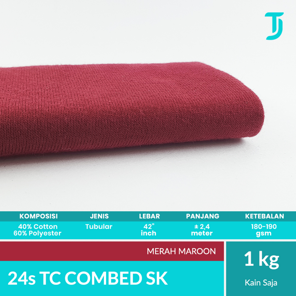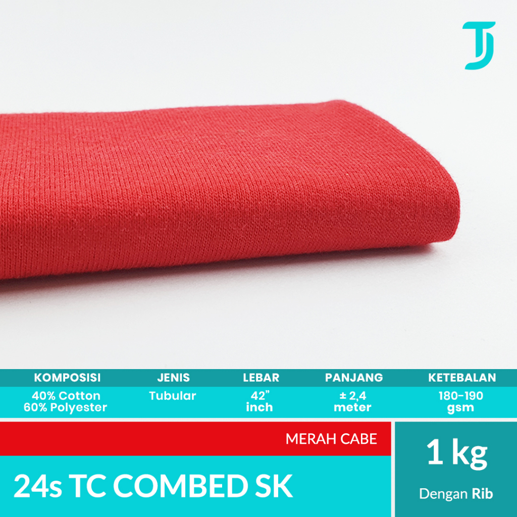 24s TC Tetoron Cotton Combed Single Knit | Kain Bahan Kaos | 1 Kg | Bahan Kaos Tumbuh Jaya | Putih Netral | Putih Bluish | Hitam | Merah Cabe | Merah Maroon | Biru Navy | Misty M71 | Misty M81