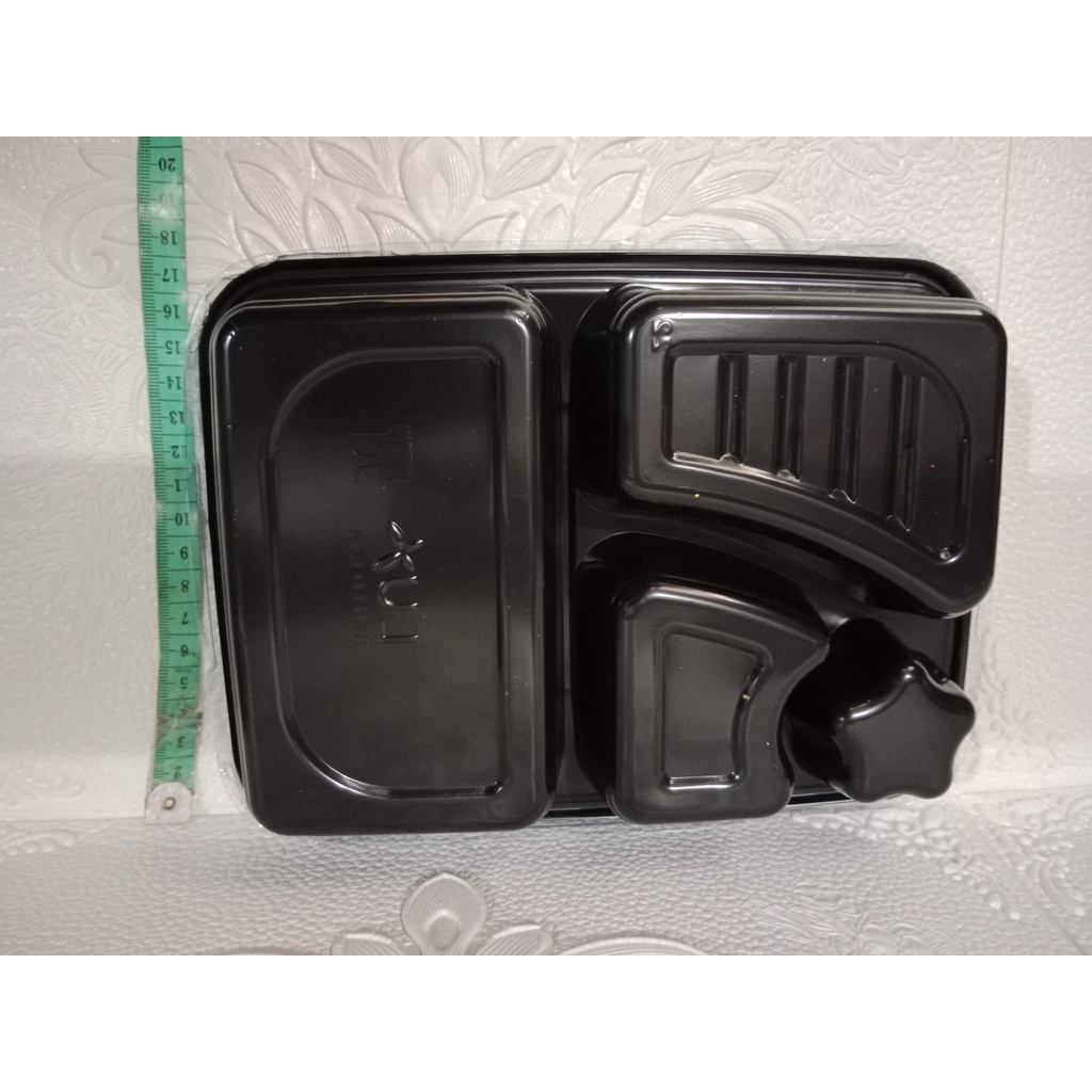 25 pcs mika Nasi Bento 4 Sekat ukuran 24x17x5 cm, box nasi mika, mika coklat, besek mika nasi bento