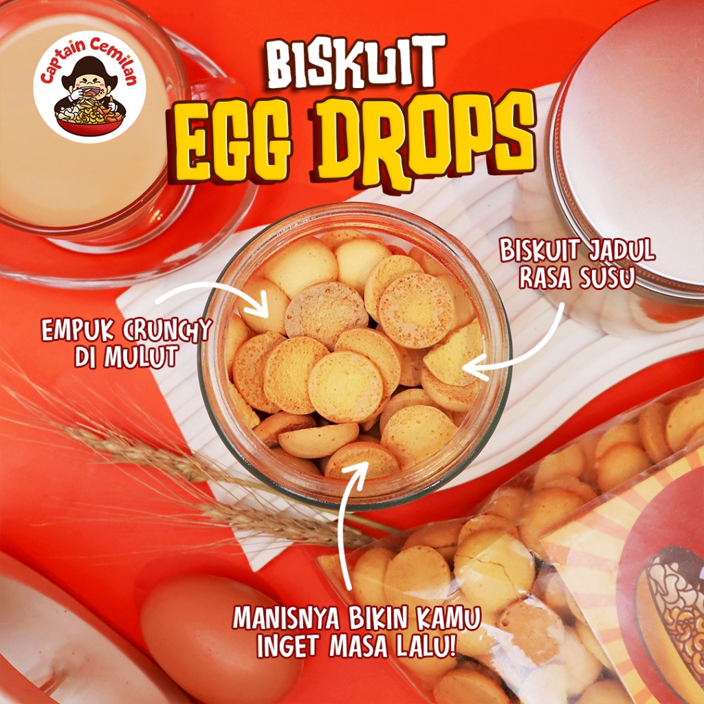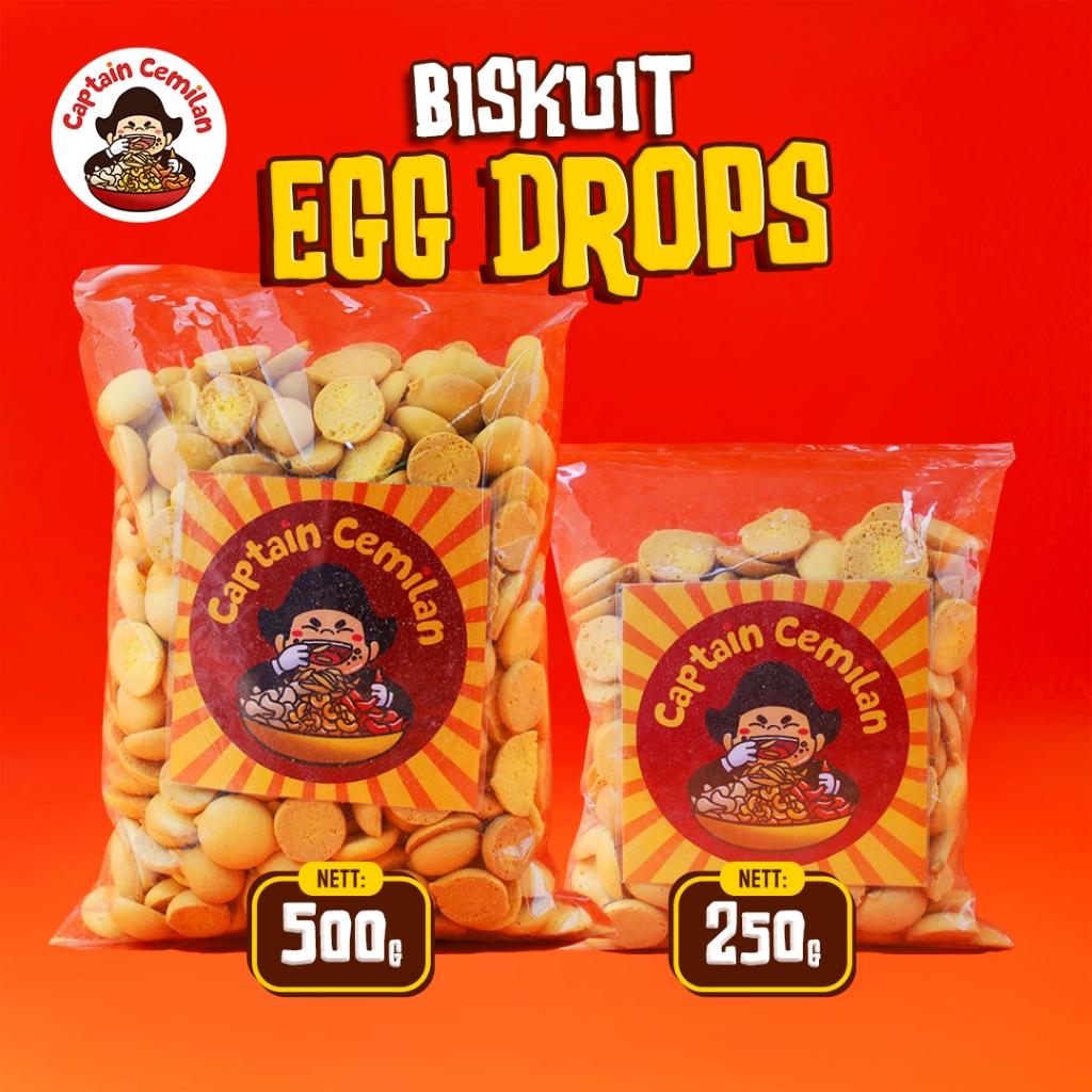 250gram Egg Drops Biskuit rasa susu Manis Mini Bulat Snack Cemilan Captain Cemilan