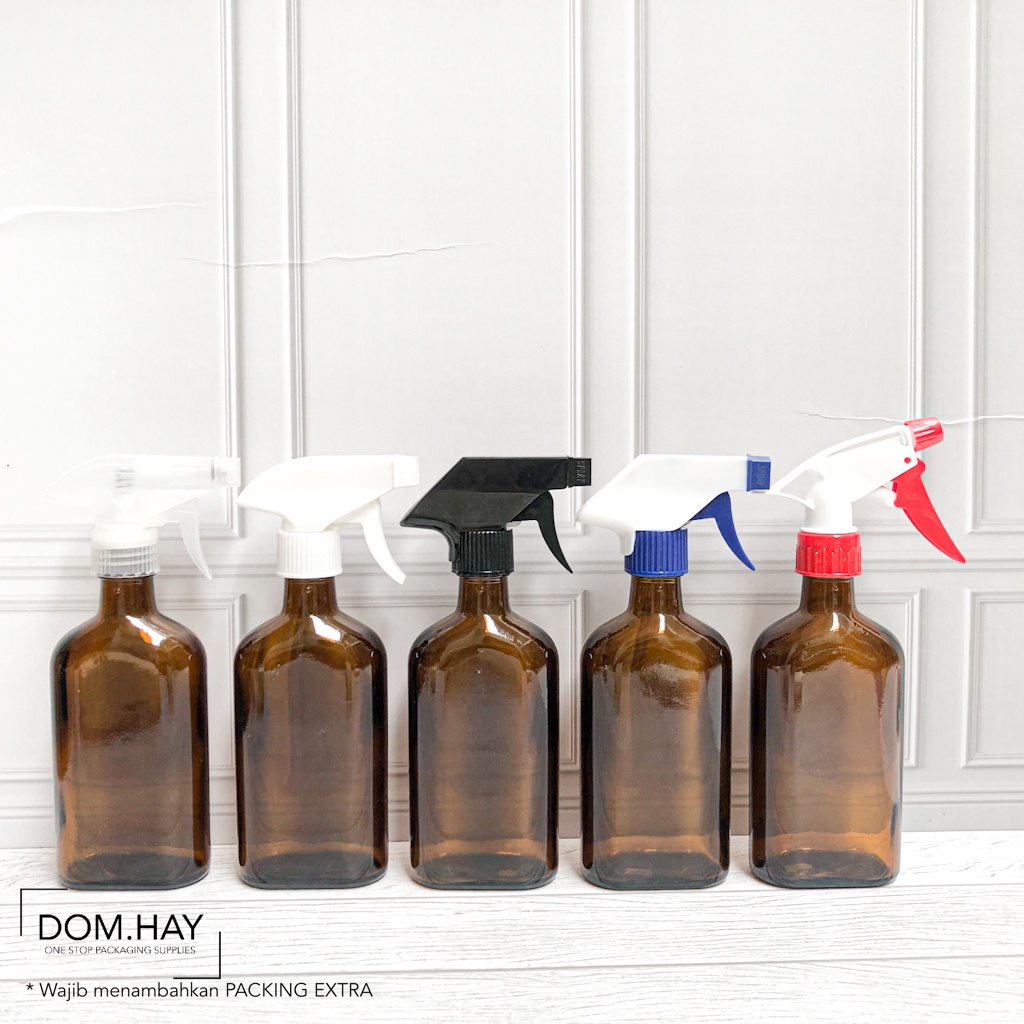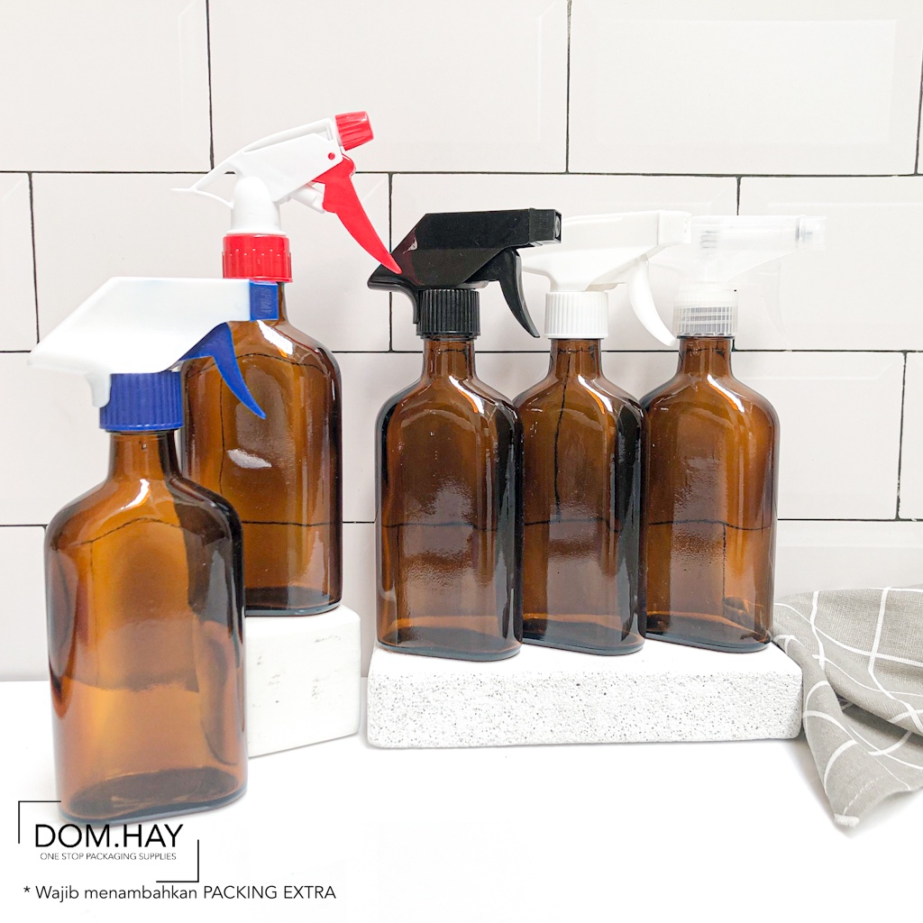250ml Botol Spray Kaca Cokelat Gepeng Amber Trigger Spray Jumbo Botol Semprot Tanaman Handsanitizer Disinfectant Mist Spray Kemasan Packaging Isi Ulang