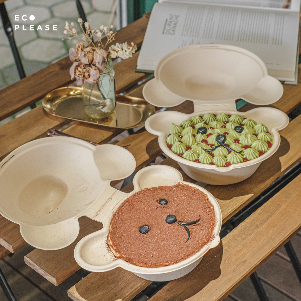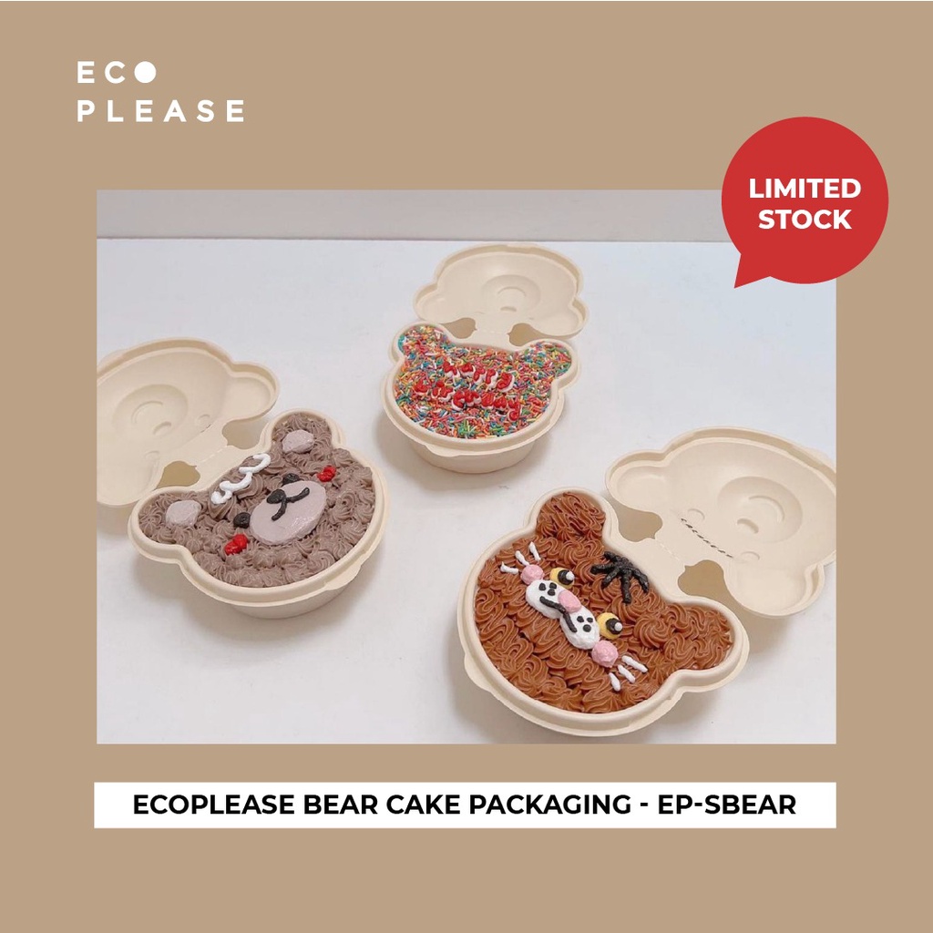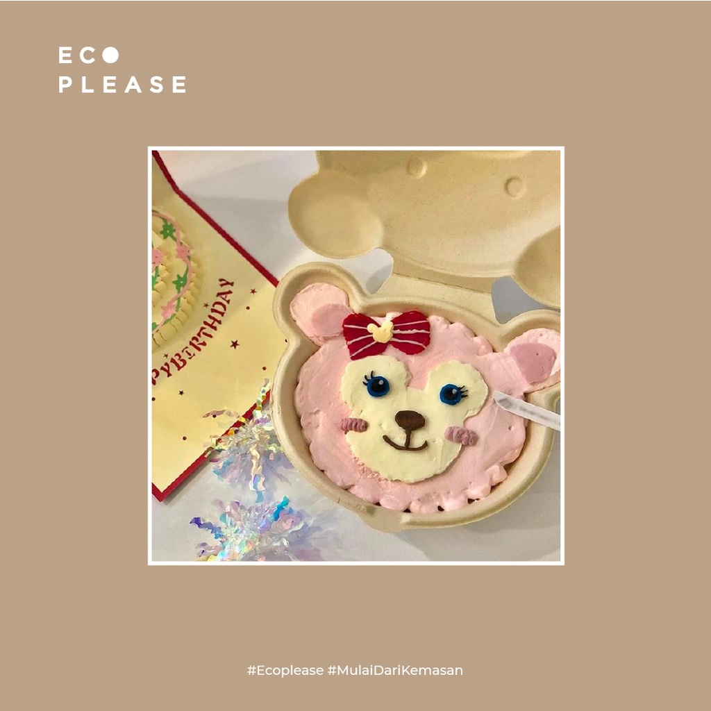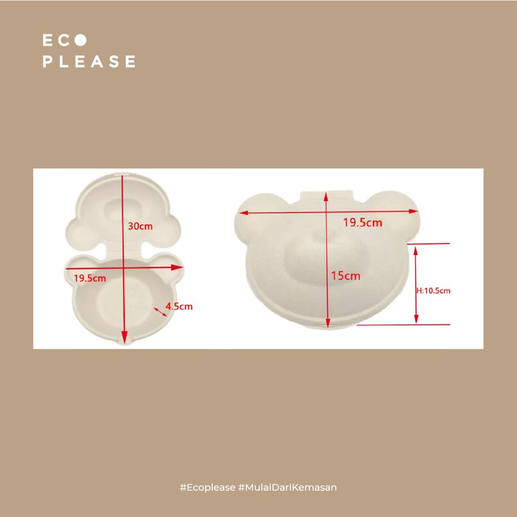 25pcs Ecoplease 17x14" Bear Cake Bagasse Box Packaging Kue Beruang Oven Safe Food Grade Home Compostable Ecofriendly Ramah Lingkungan Biodegradable Ampas Tebu