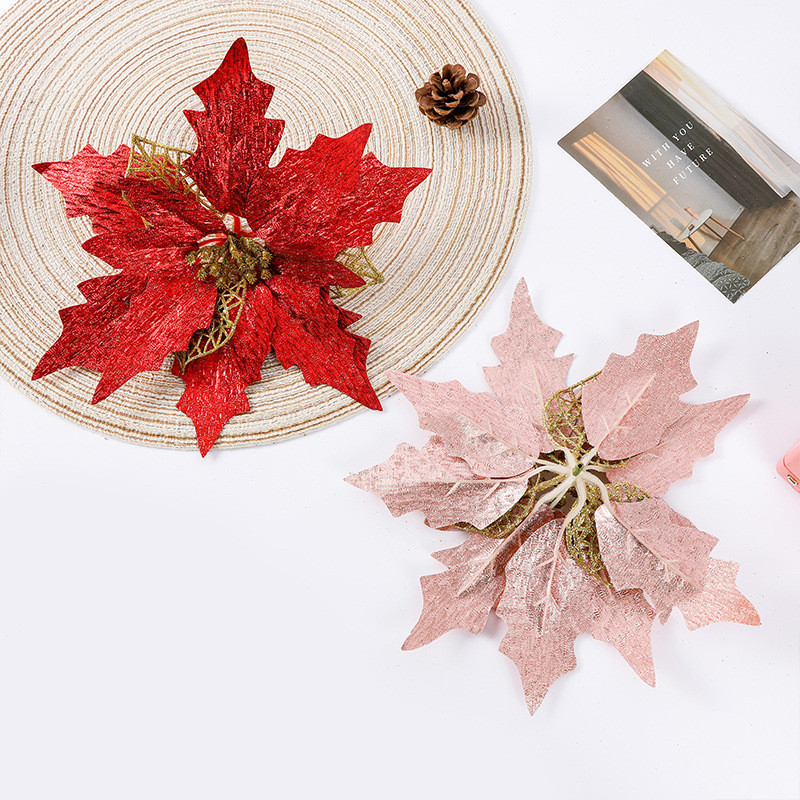26CM Aksesoris Ornamen Bunga Cantik Pohon Natal Bunga Glitter Christmas Garland Hiasan Dekorasi Merry Christmas FLW-TTT