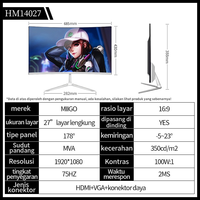 27-inci 144Hz monitor komputer LCD, desktop kantor, gaming, 1080P, layar tanpa batas dengan resolusi