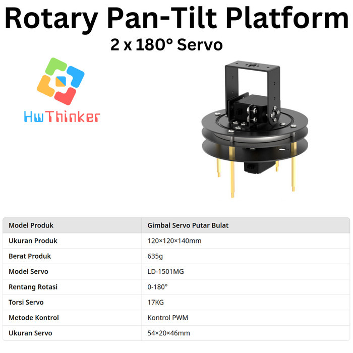 2DOF 2-DOF Electric Platform Rotatable Rotary Robot Arm Base Platform Pan-Tilt Bracket Aluminium Alloy with LD-1501MG 17KG Torsi Metal Servo For DIY Smart RC Car