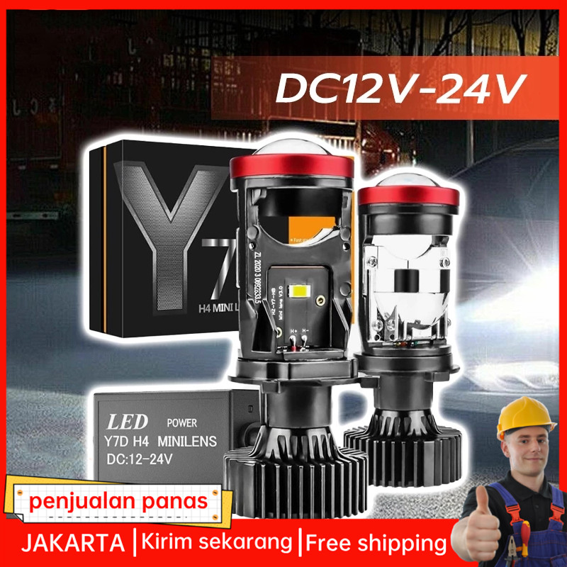 2PCS Lampu Head lamp Led Projie H4 Mini Lens Y6 Y7 Y8 Y11 Original Super Terang Bohlam Mobil LED 35W 80W 12-24 Volt 36mm Motor Mobil Truk Universal