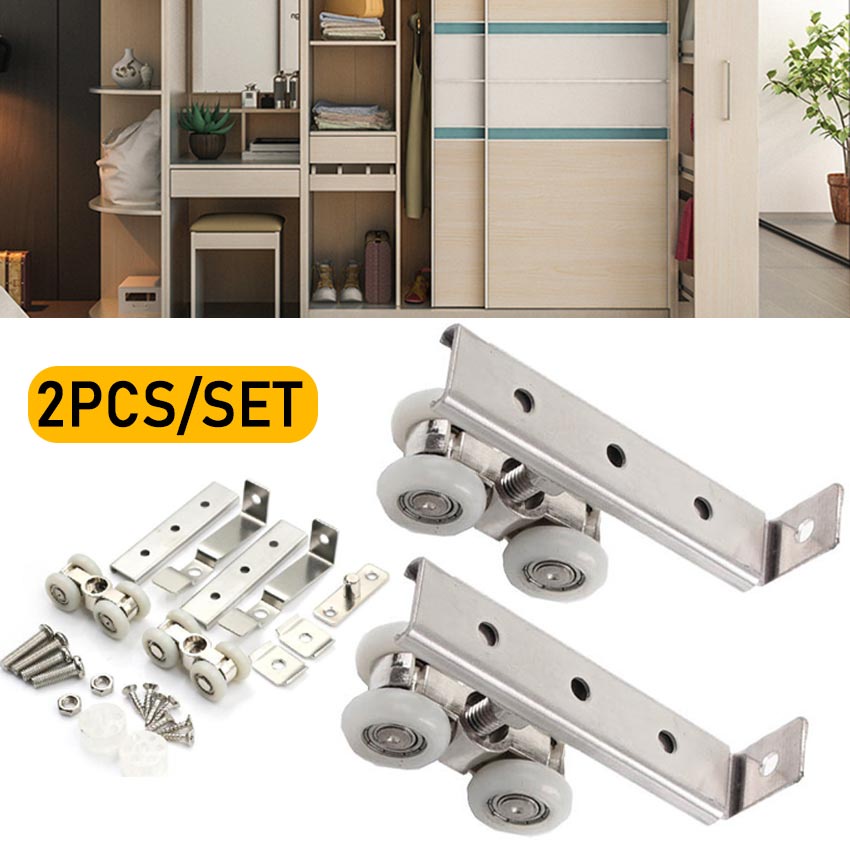 2Pcs/Set Roda Sliding Door Roller Atau Roda Buat Pintu Geser - 8 Wheels Home Room Wood Door Hanging Wheels Roda Rumah Kamar Roda Gantung - Roller Pintu Sliding - Roda Pu sliding Pintu Kayu Rail Track Pulley