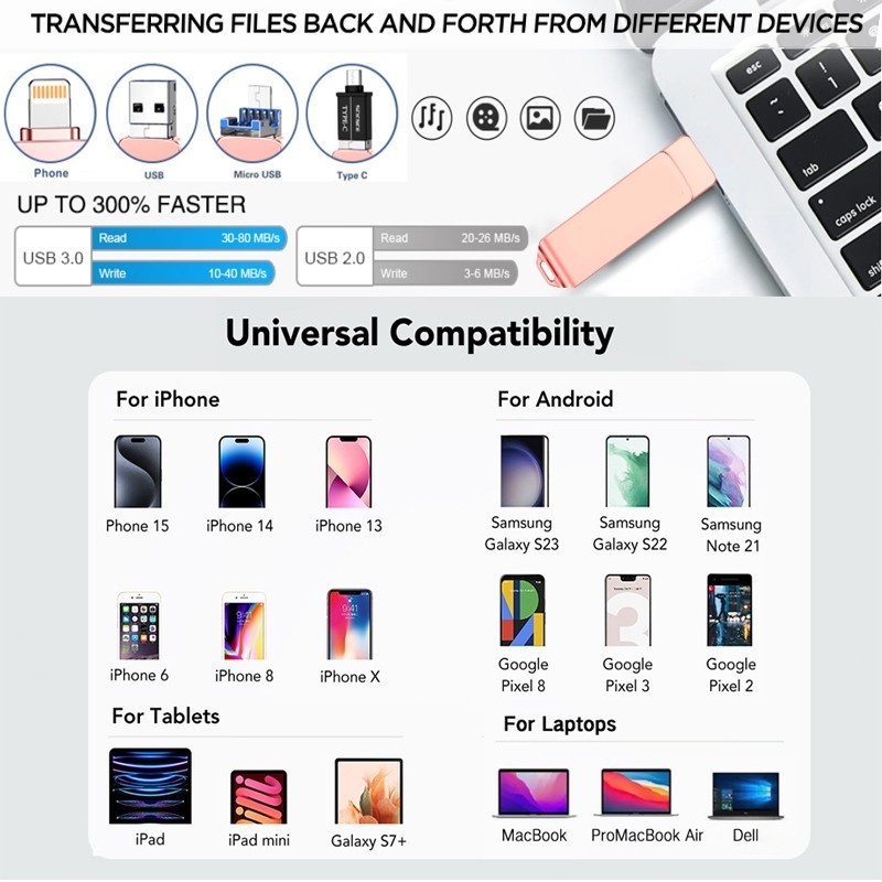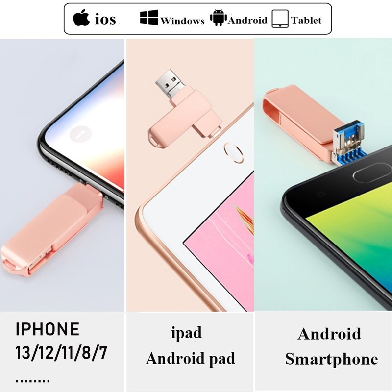 2TB Flashdisk Intended for iPhone, 1TB OTG Data Storage for Photos and Videos, 32GB 64GB USB External Memory Storage Flash Drive Compatible with iPhone Android iPad and Computers (Rose Gold)