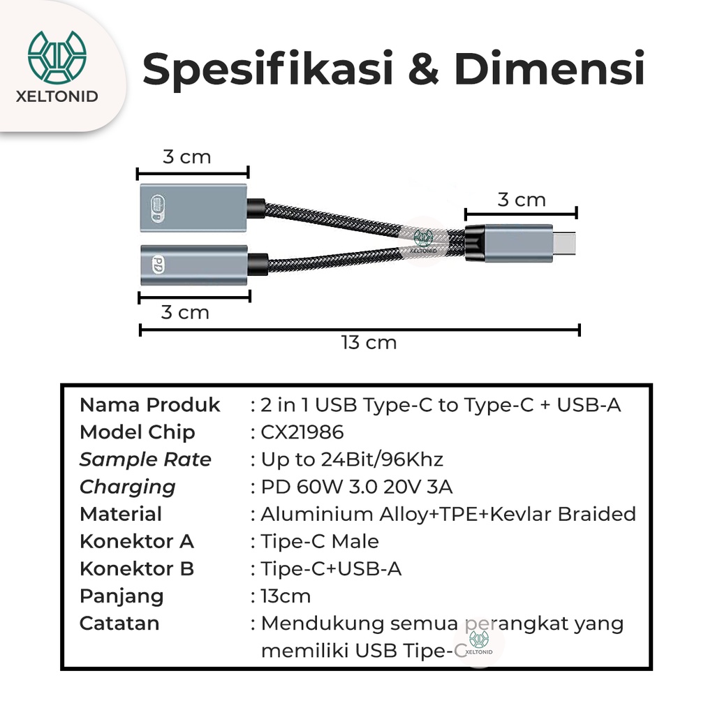 2in1 USB OTG Type-C 3.5mm DAC Audio PD 3.0 60W Fast Charging Adapter