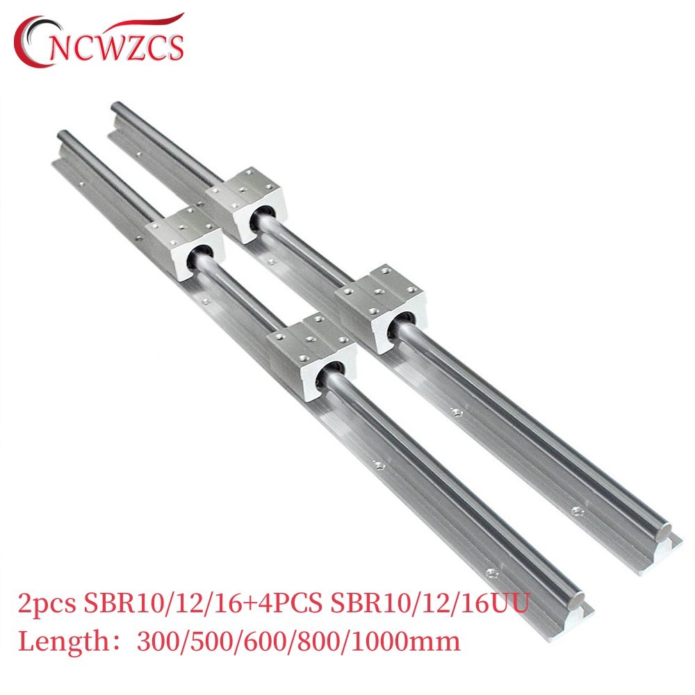 2set SBR10 SBR12 SBR16 300 500 600 700 800 1000mm Fully Supported Linear Rail with SBR10UU Linear Bearing Block CNC 3D Part