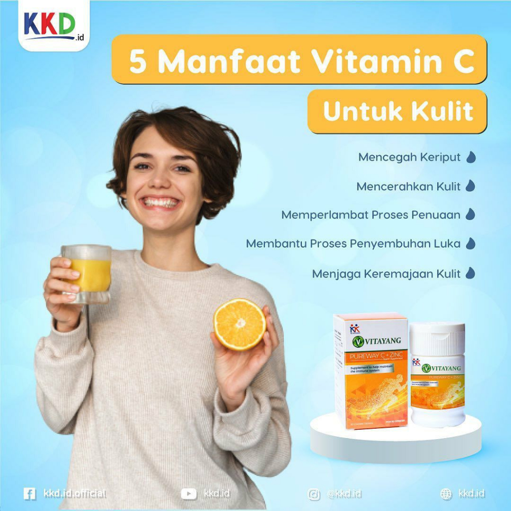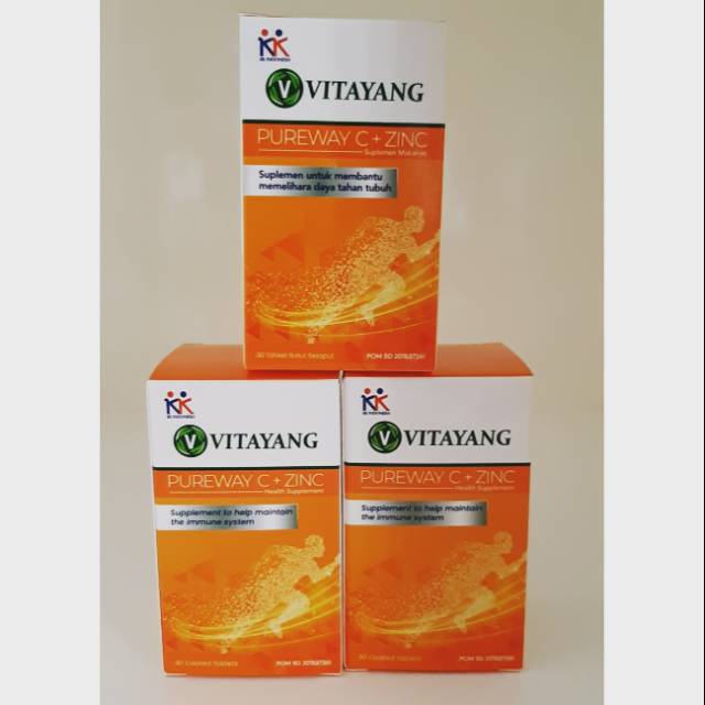 Vitayang Pureway C + Zinc (3 Botol x 30 Tablet @500mg) Vitamin C Tingkatkan Kekebalan Imun Tubuh