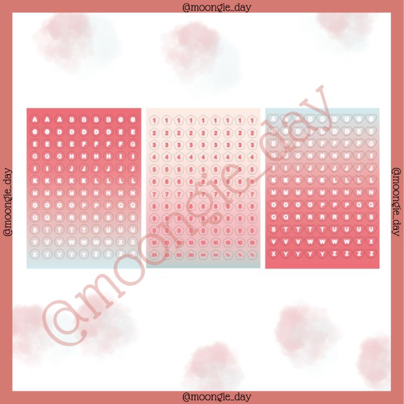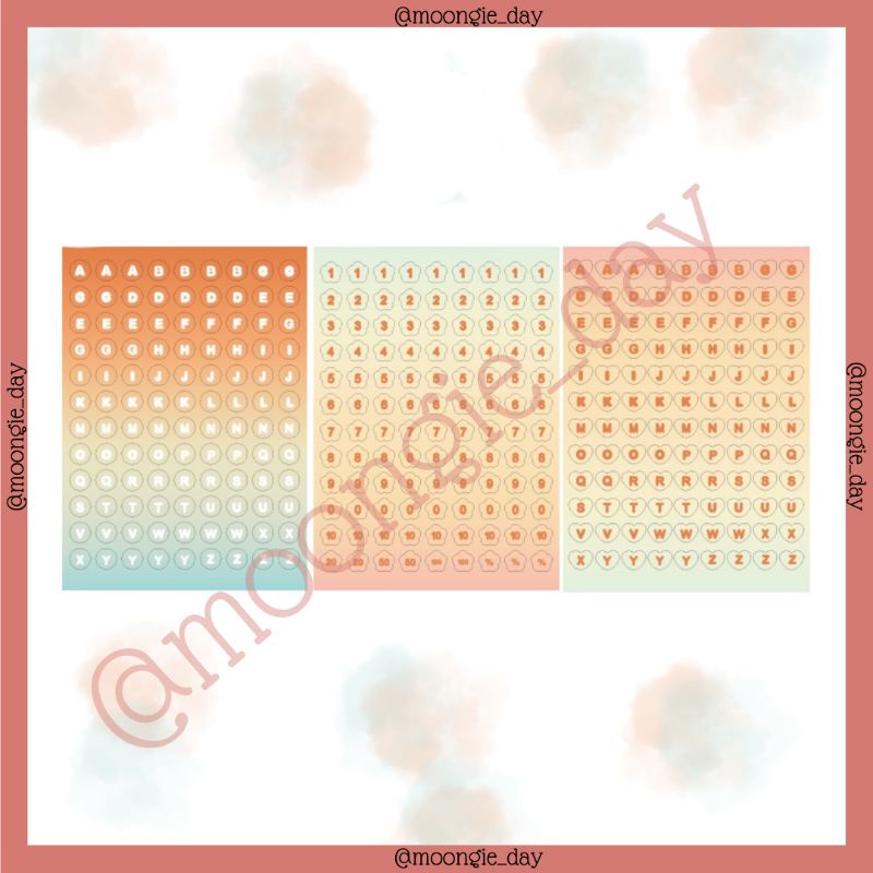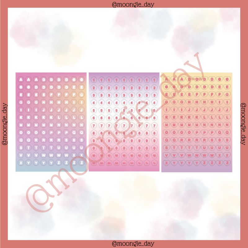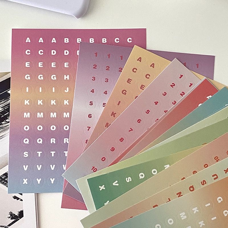3 LEMBAR STIKER ALPHABET HURUF NOMOR ANGKA TEMA GRADASI WARNA STICKERS NUMBER COLOUR BULLET JURNAL LUCU MURAH FIY DIARY