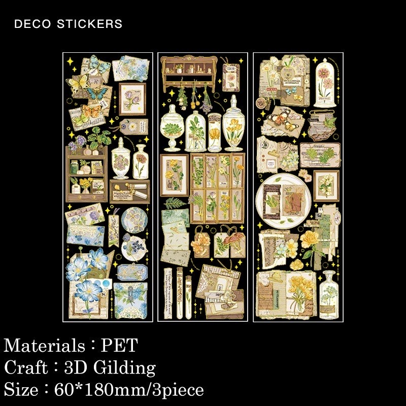 3 Lembar Gold Flower Vintage Ancient Aesthetic Sticker Stiker Bunga 07 Hologram DIY Scrapbook Journal Deco Stiker Estetik