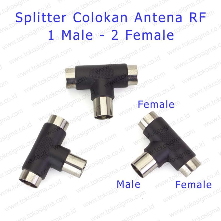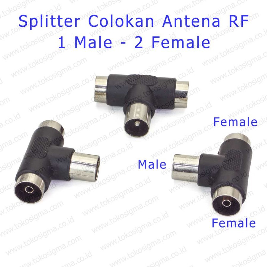 3 PCS Colokan Cabang Antena TV RF Splitter 1 Male to 2 Female Konektor 1m-2f