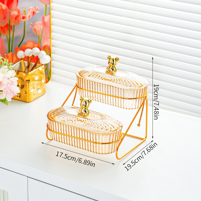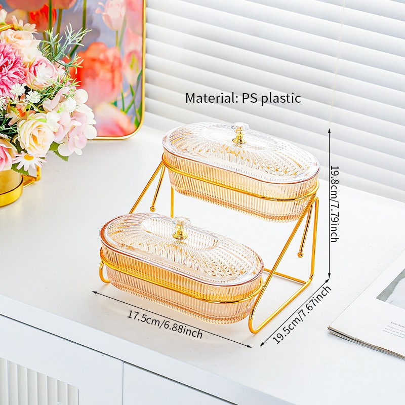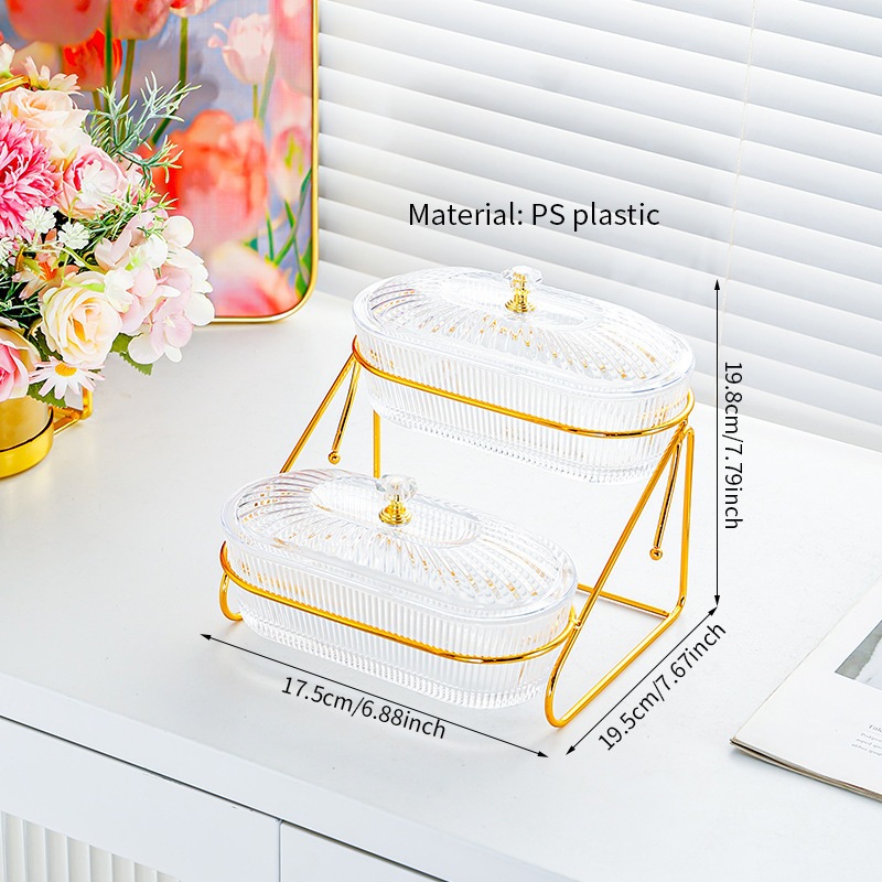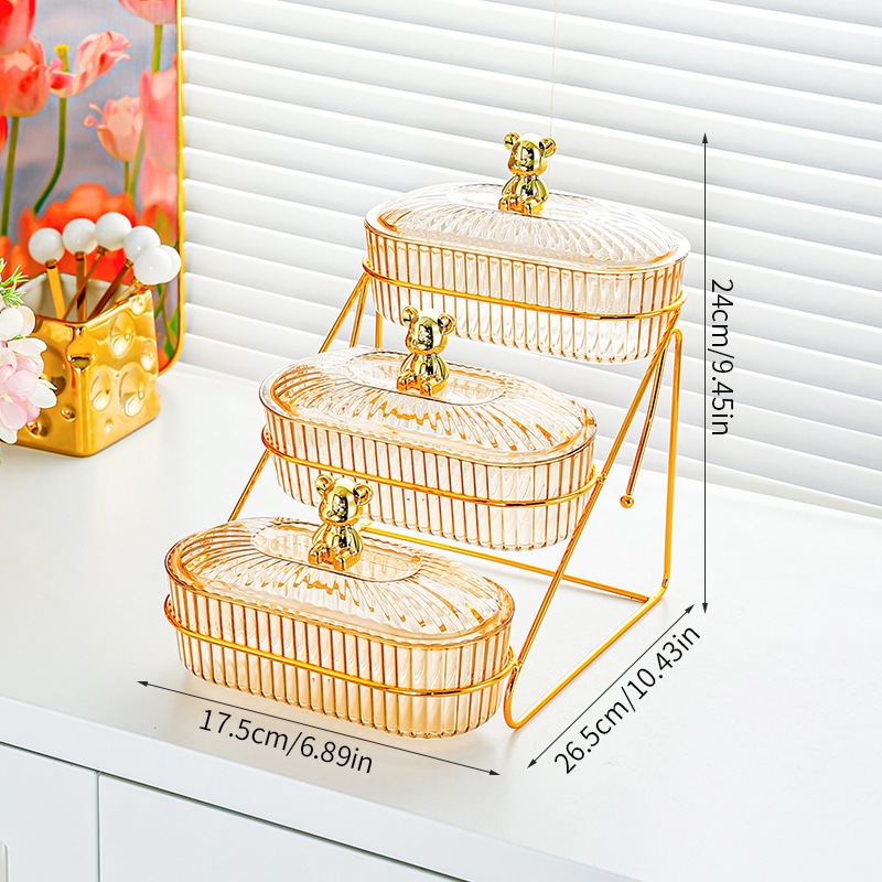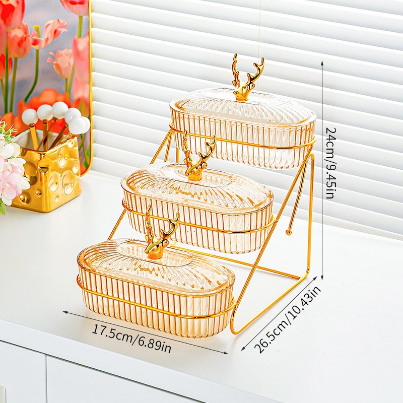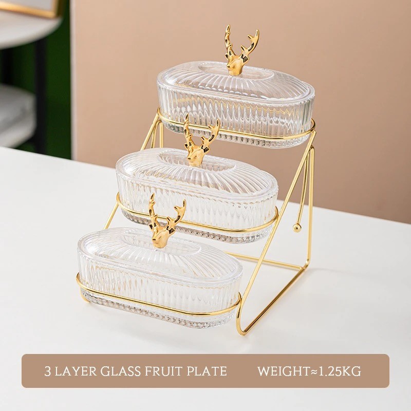 3 Tingkat Toples Tempat Buah Snack Makanan Ringan Wadah Buah Dengan Tatakan