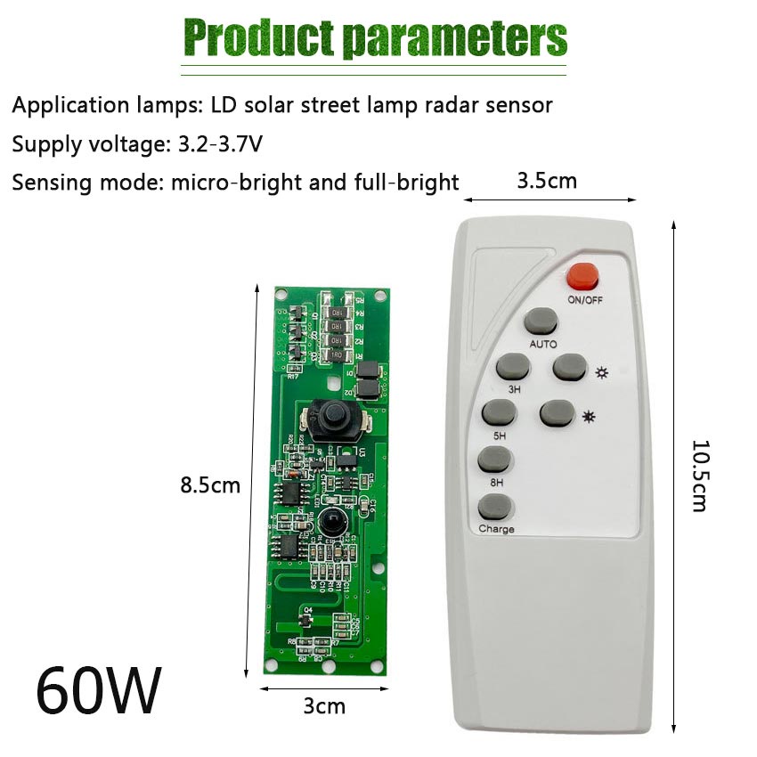 3.7V/60W Solar Wall Lamp Controller Circuit Board Microwave radar induction Sensor Module 60W High Power Solar Lamp Circuit Board Automatic Street Light Controller