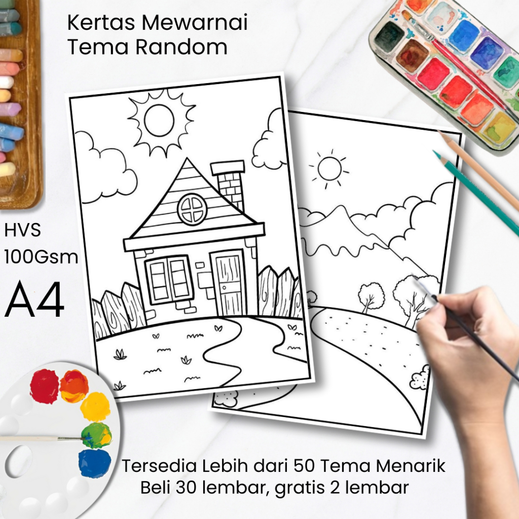 30 Gambar Kertas Mewarnai Anak TK SD Tema Random A4