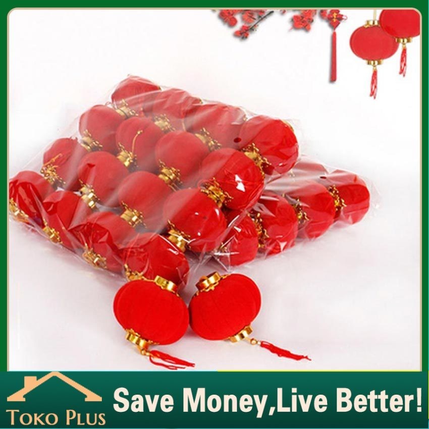 30 Pcs Lampion Beludru Mini Gantungan Sincia Imlek Merah / Gantungan Lampion Mini Beludru Dekorasi Pohon Imlek / Sincia Merah / Lampion Beludru Sincia Imlek