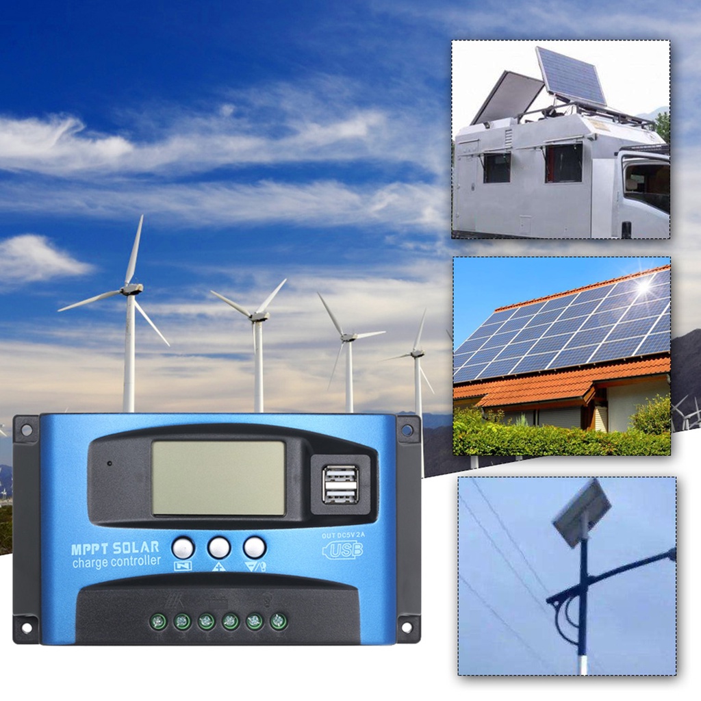30A MPPT Solar Charge Controller Dual USB LCD Display Auto Solar Cell Panel Charger Regulator