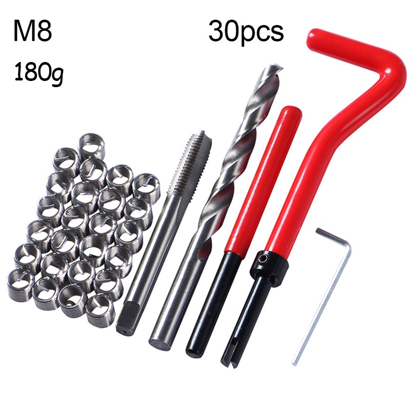 30pcs Metric Thread Repair Kit M6 M8 Recoil Helicoil Car Pro Coil Besi Tahan Karat