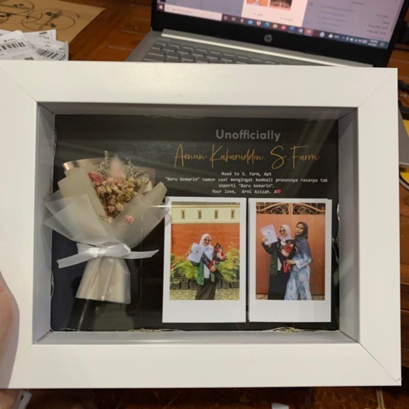 30x25cm lampu hias buket bunga edelweis LED scrap box bingkai frame pigura foto popup 3D hadiah kado gift hampers custom ultah ulang tahun anniversary valentine wisuda wedding hari ibu guru Natal kelulusan unik Aesthetic cewek cowok anak