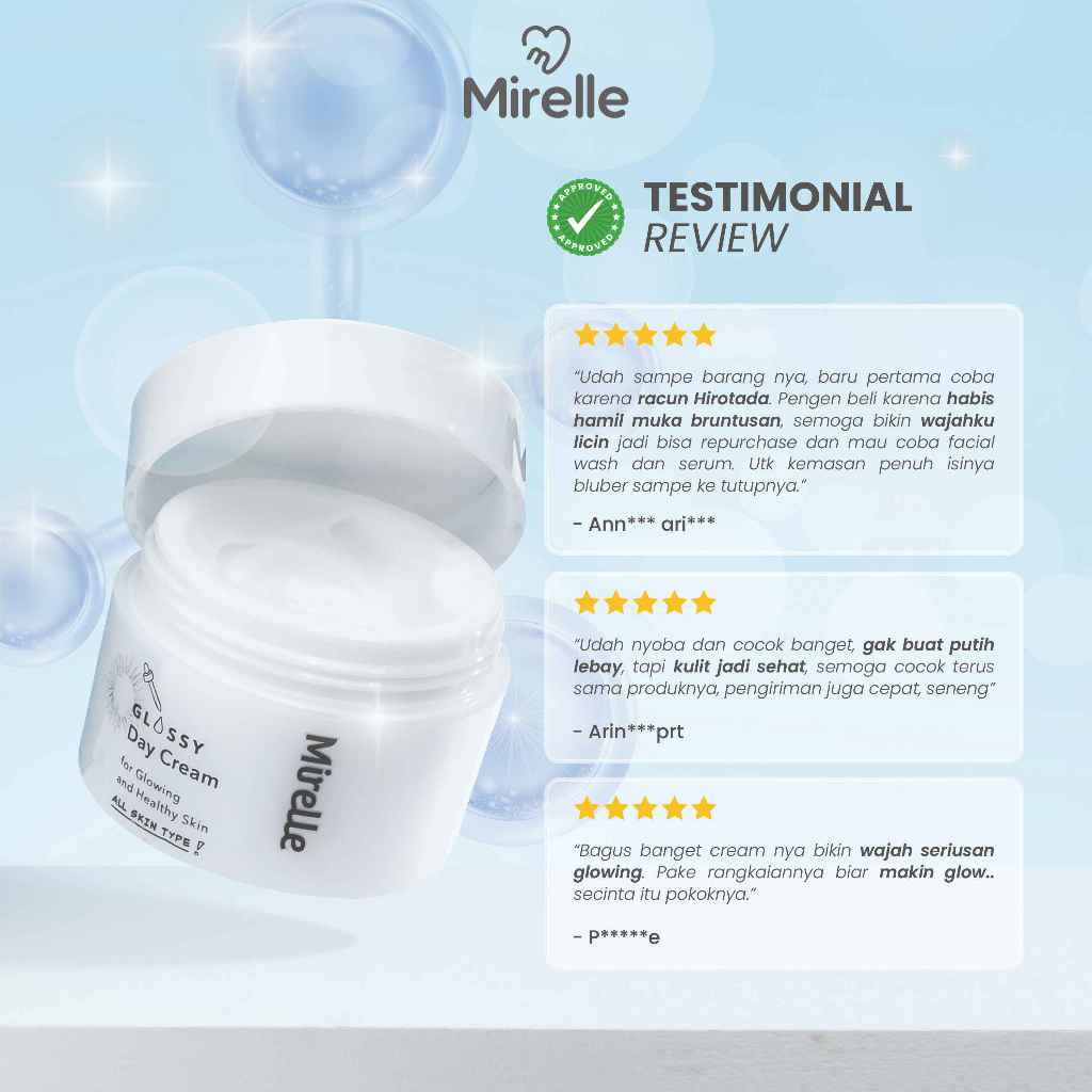 Mirelle Glossy Day Cream Pelembab Wajah 20g Skincare Melembabkan dan Mencerahkan Kulit