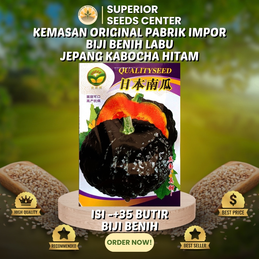 35 Butir Biji Benih Labu Kabocha Jepang Hitam Madu Manis Lembut (Kemasan Original Pabrik Impor)