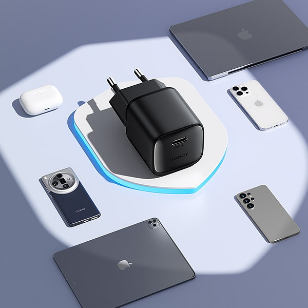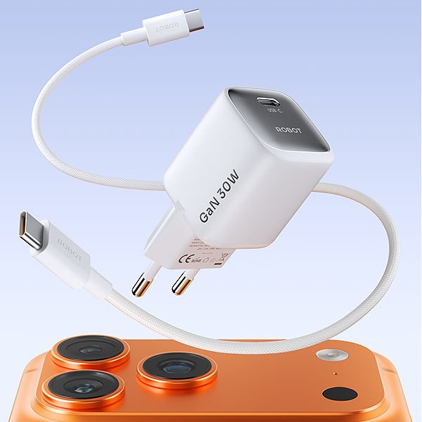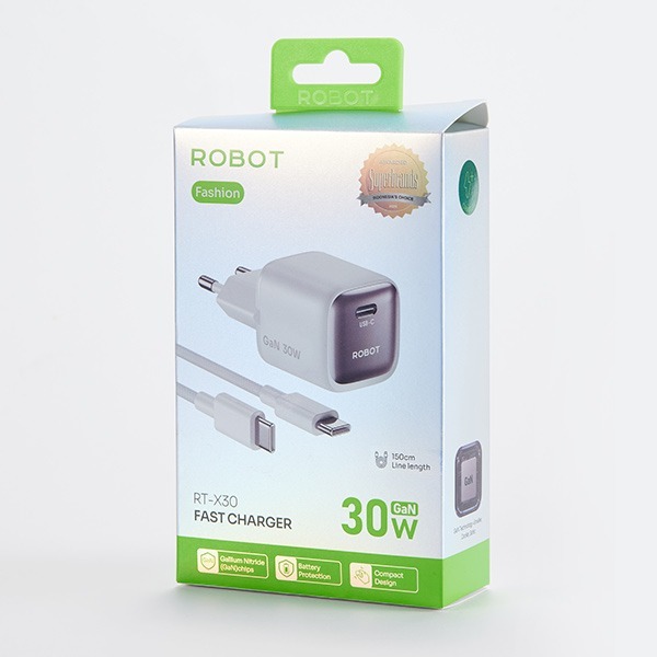 ROBOT RT-X25 RT-X30 Fashion Series Mini GaN Charger C TO C 25W 30W With 1.5m Braided Cable White