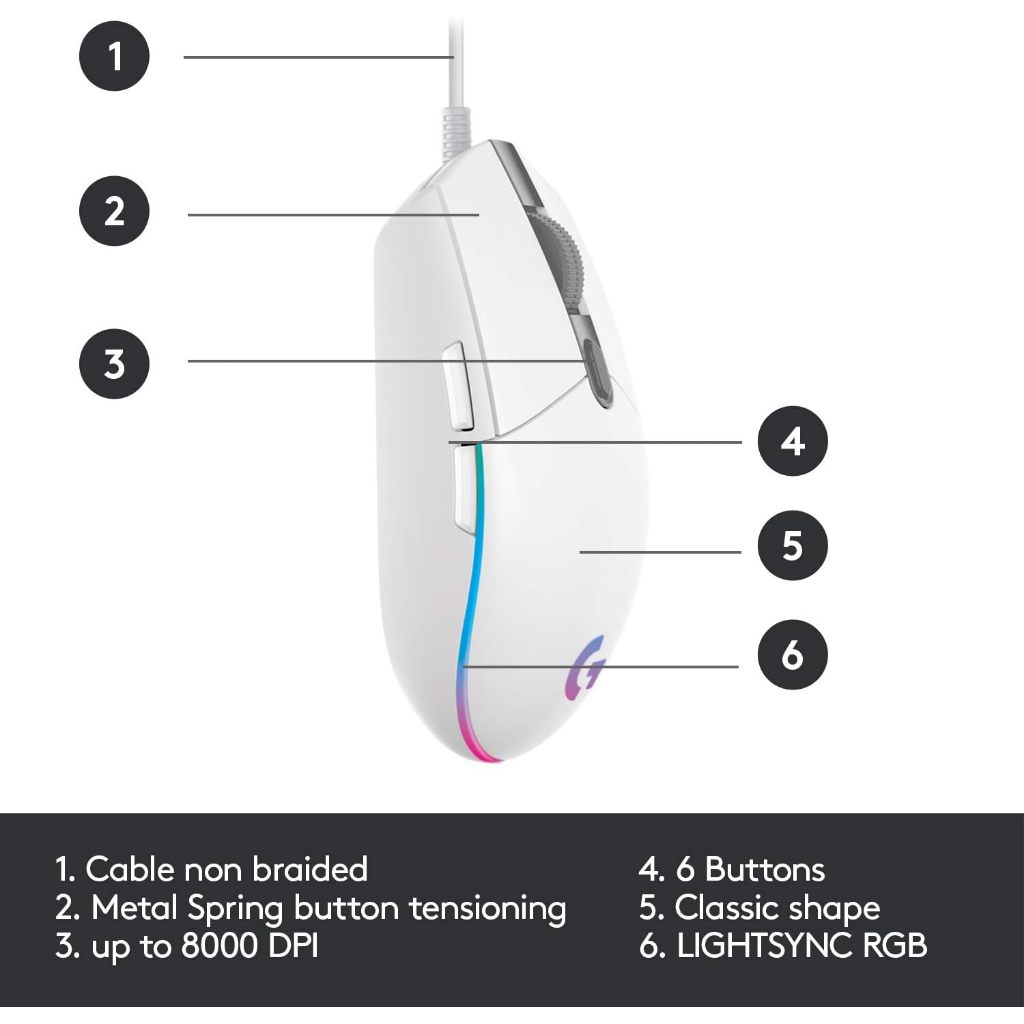 Logitech G102 Wired Mouse Light Sync Gaming Mouse 8000 DPI 6 Programmable Buttons Gaming and High Performance LIGHTSYNC RGB Pernah Dipakai