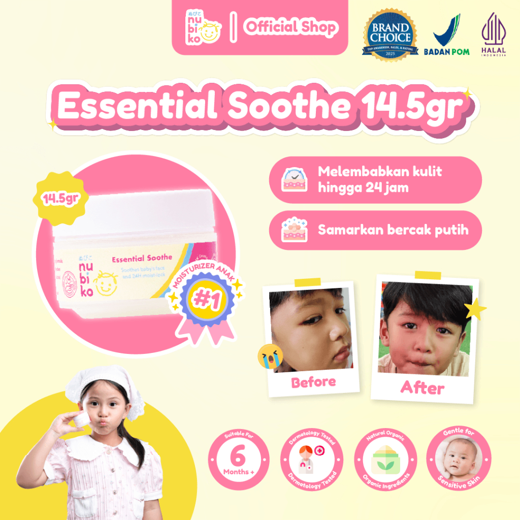 Nubiko Essential Soothe 14,5gr dengan 8x Ceramide Niacinamide Microbiome Moisturizer Face Cream Anak