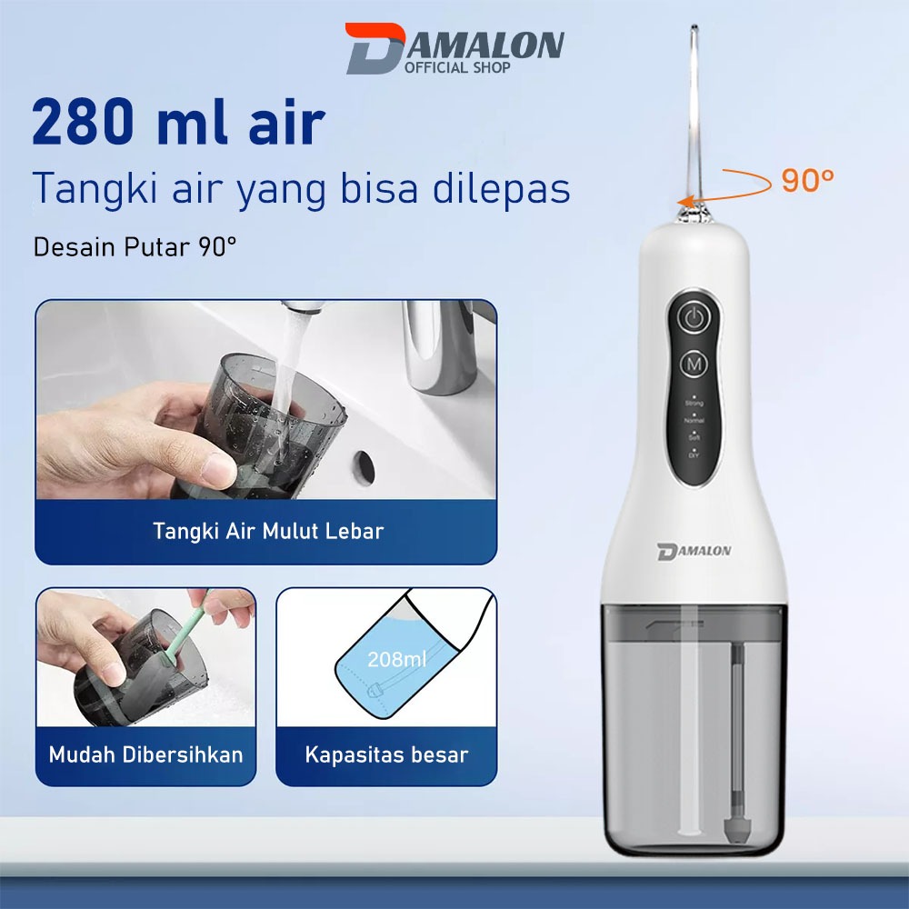 DAMALON Pembersih Gigi Water Flosser, 4 Mode Irigasi Mulut Nirkabel Portabel Isi Ulang 300ML Benang Gigi Dentel Elektrik dengan Kekuatan DIY, Pilihan Pembersih Benang Gigi Perjalanan Tahan Air IPX7 untuk Rumah, Perjalanan