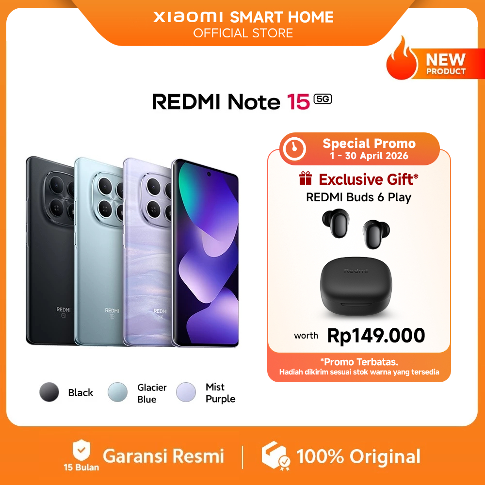 Xiaomi Redmi Note 15 5G (6/128 GB) (8/256 GB) (12/512 GB) | Baterai 5520mAh dengan desain ramping | Kaca layar dengan daya tahan tinggi | IP66 Ketahanan debu dan air | Kamera super jernih 108MP | Layar AMOLED FHD+ 6,77" | NFC [Xiaomi Official Store]