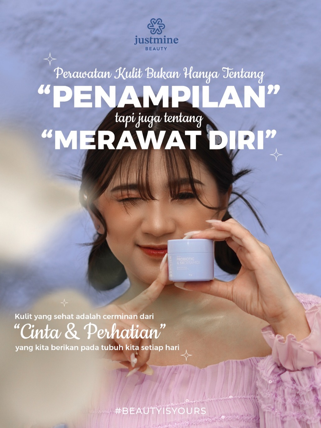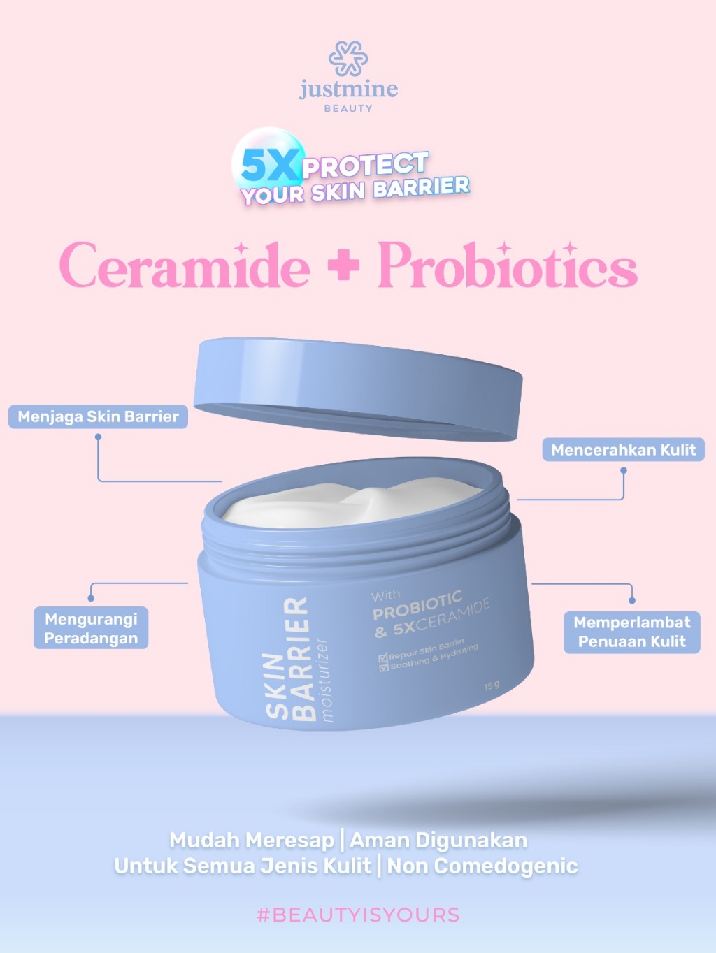 Justmine Beauty Skin Barrier Moisturizer Cream 5X Ceramide With Probiotics Memperbaiki Skin Barrier, kulit berktesktur, dan kulit Jerawat