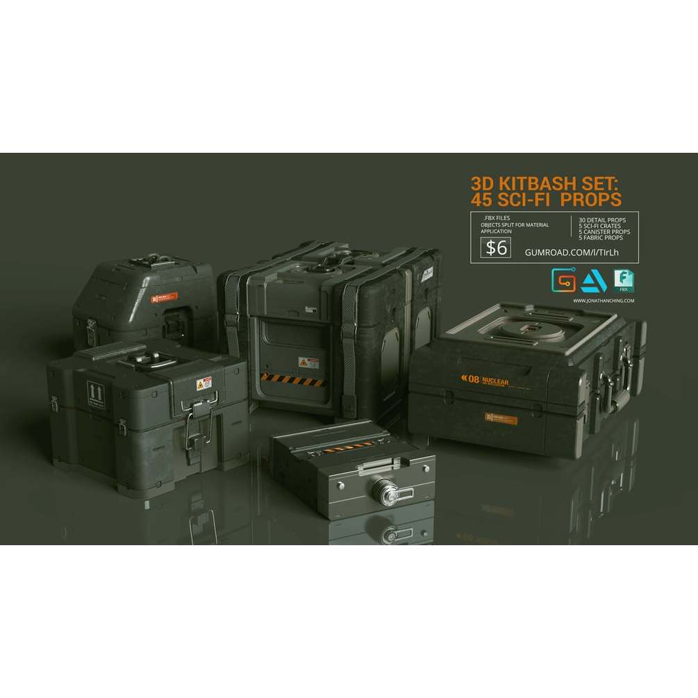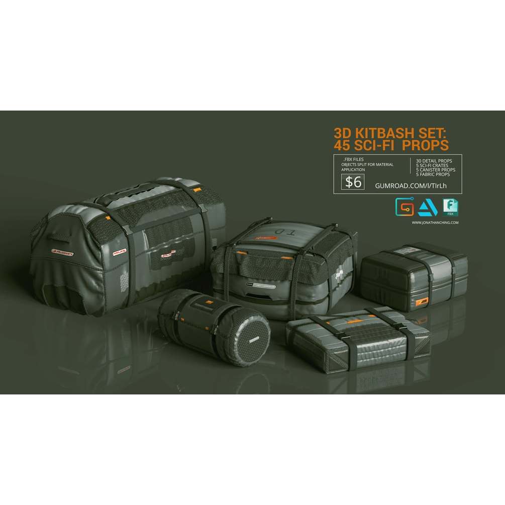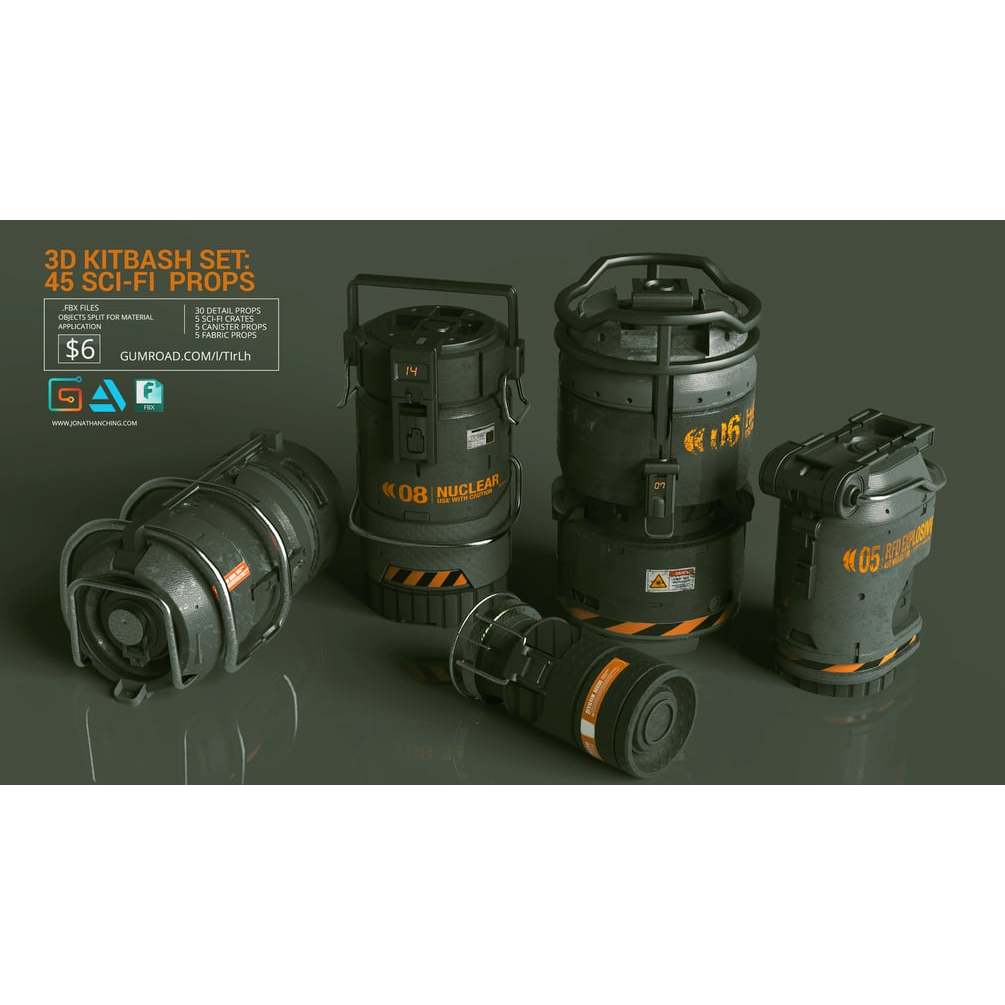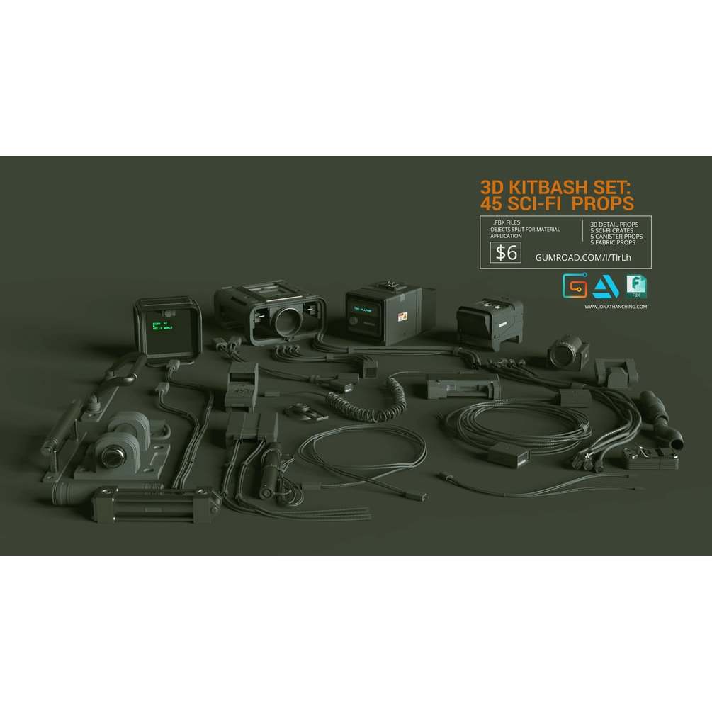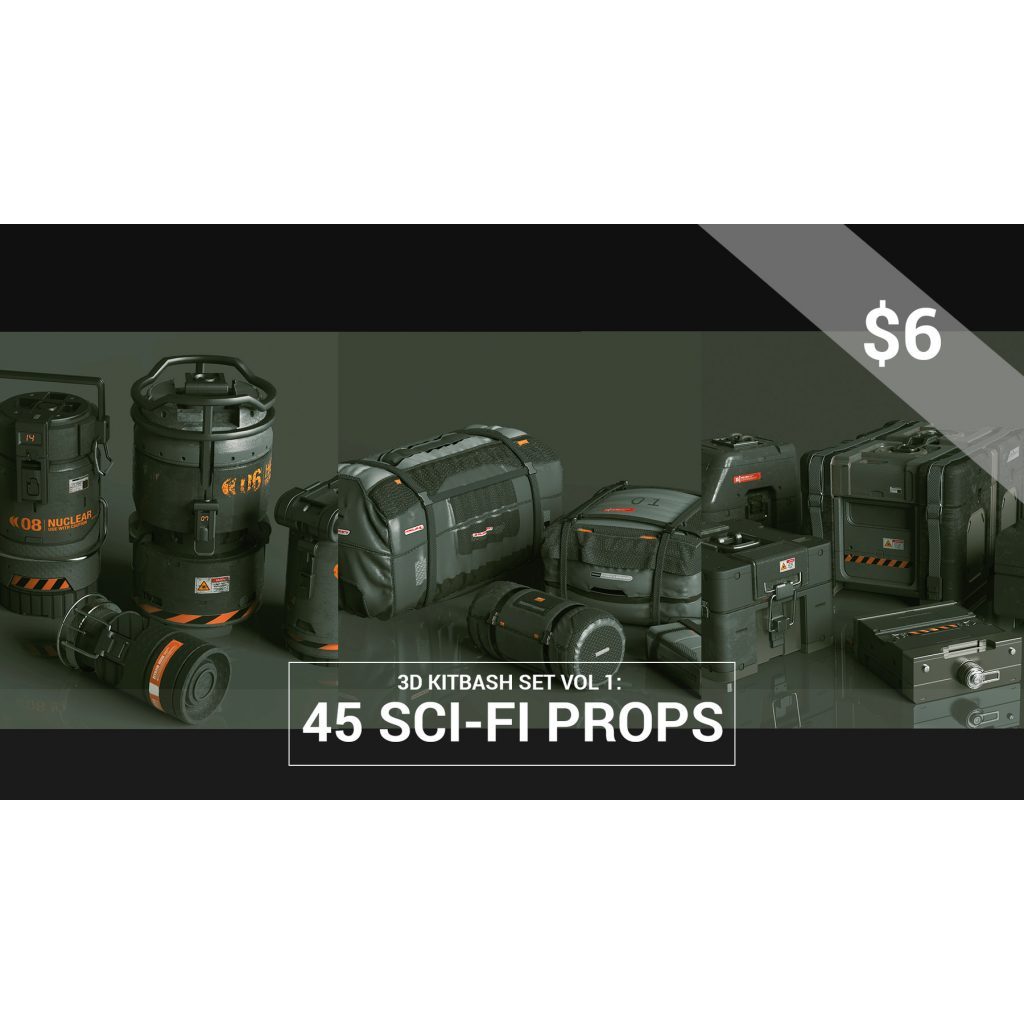 3D Kitbash Set Vol 1 - 45 Sci-Fi Props Kitbash 3D Model Asset Library