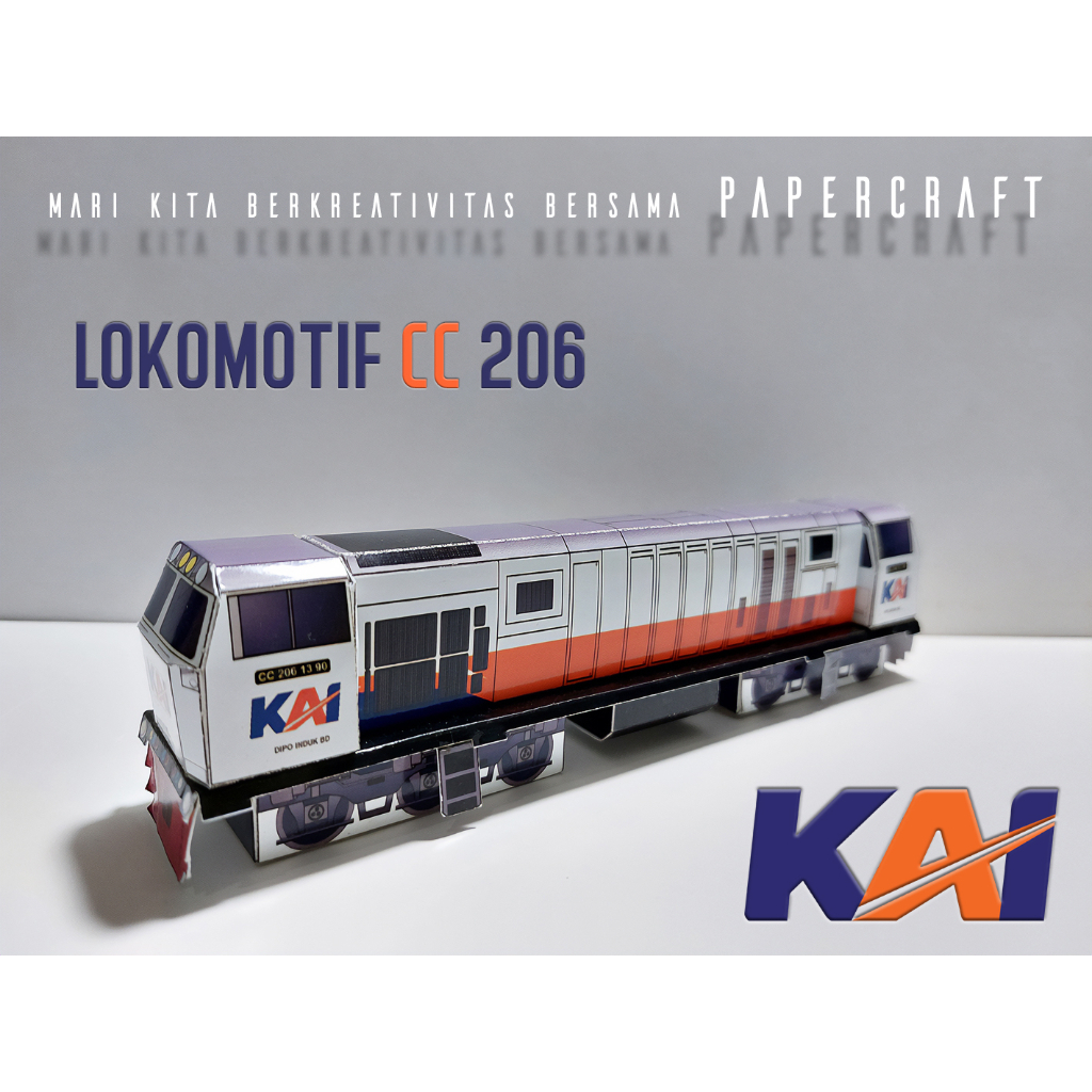 3D Papercraft Kereta Api Indonesia Lokomotif CC 206 Pola Kertas DIY