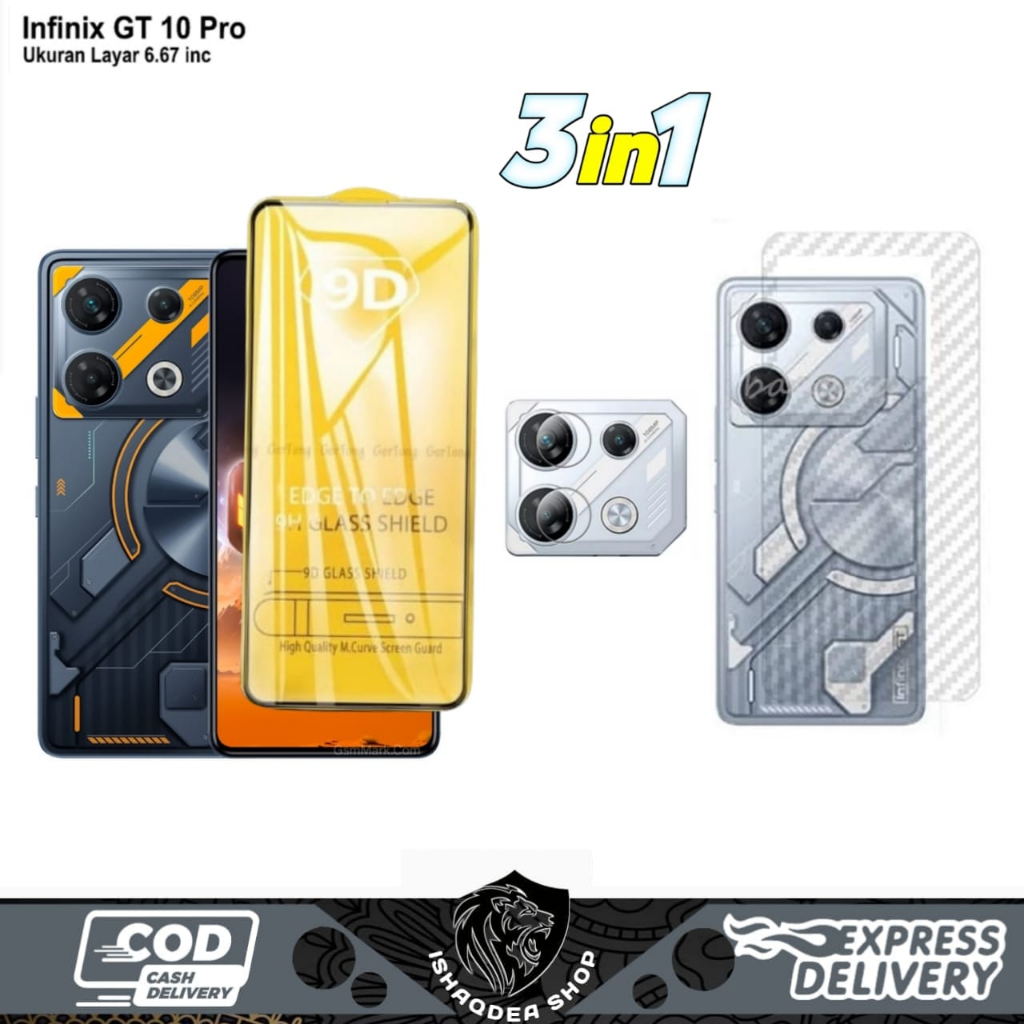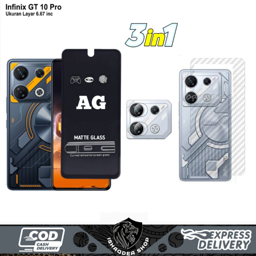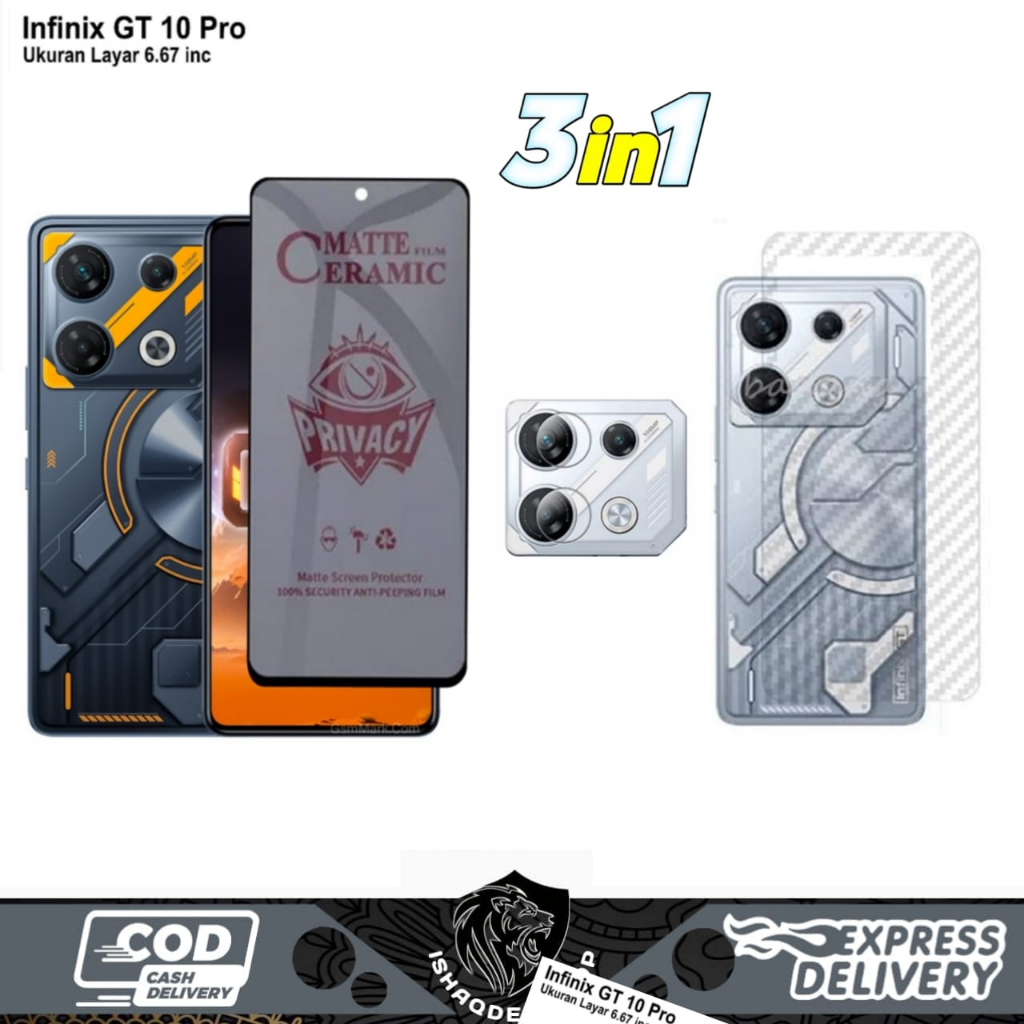 3IN1 TEMPERED GLASS PRIVACY INFINIX GT 20 PRO 10 PRO BONUS LENSA CAMERA+GARSKIN CARBON