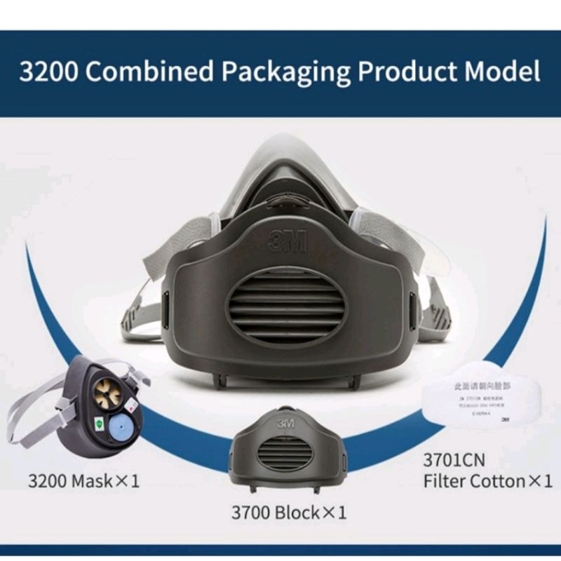 3M 3200 Masker Respirator Single Cartridge Complete Set 3 In 1