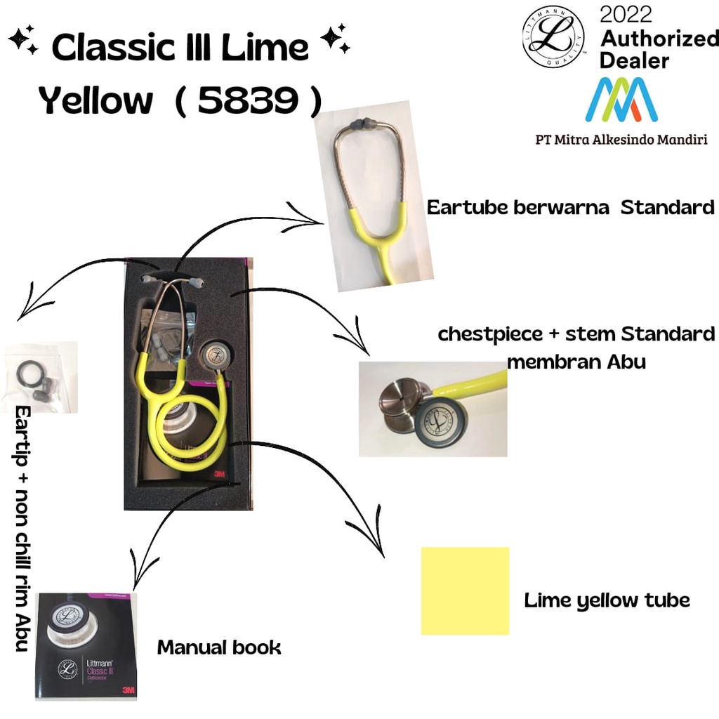 3M Littmann Stethoscope Classic III Lime Yellow - 5839 / Litman / Littman / Litmann Stetoskop Lime Yellow