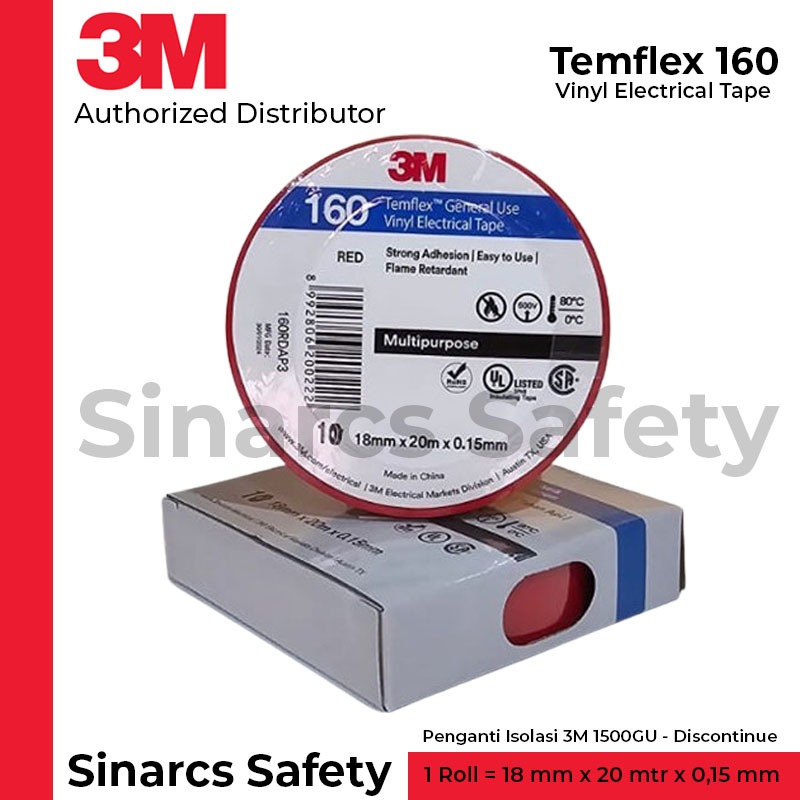 3M Temflex 160 Isolasi Listrik General Use Vinyl Electrical Tape, 18 mm x 18 mtr. Pengganti Isolasi 3M 1500GU (Discontinue)