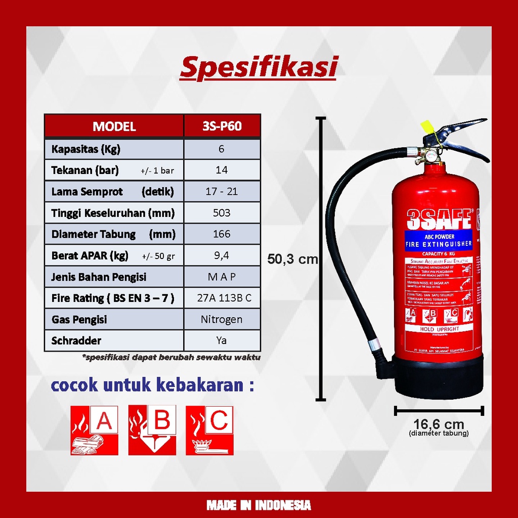 3SAFE - Apar 6KG ABC Powder - Fire Extinguisher ABC Powder - Alat Pemadam Ringan Portable (Protec A Home)