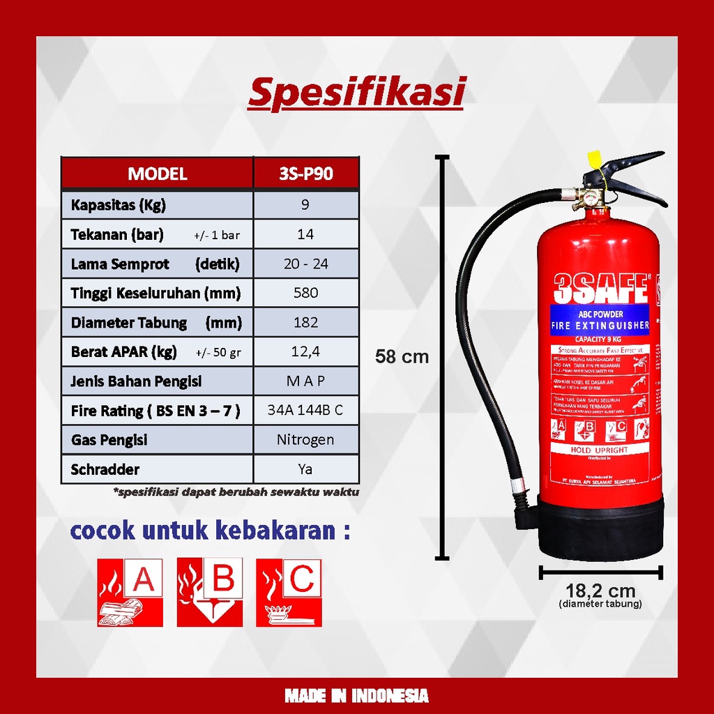 3SAFE - Apar 9KG ABC Powder - Fire Extinguisher ABC Powder - Alat Pemadam Ringan Portable (Protec A Home)