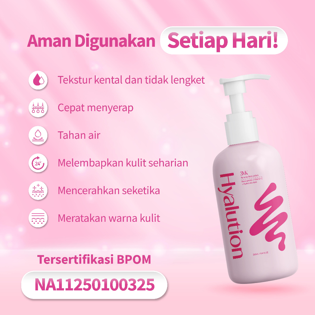 [BPOM] 3VK Hyalution Tone Up Body Lotion with UV Filter 250ml | Instant Tone Up | Lotion BPOM mencerahkan