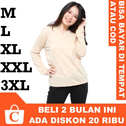 3XL XXL XL L M Kaos Wanita Cewek Jumbo Panjang Polos Leher V Neck COKLAT SUSU KHAKI MOKA KREM KHAKIS